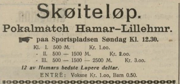 Søndag 7. mars 1920 ved duket for bykamp på Sportsplassen på Lillehammer.