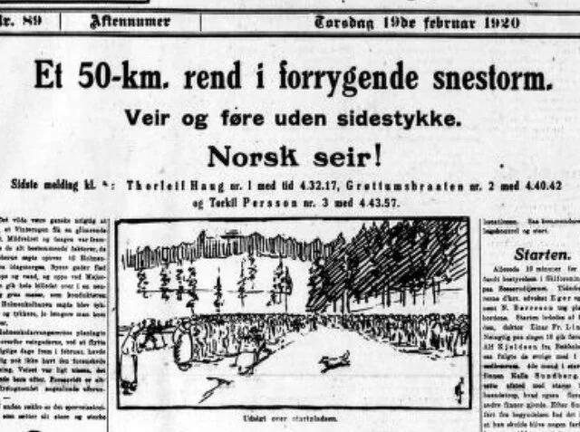 For hundre år siden i dag ble 5-mila avviklet i et brutalt snøvær, og en tidligere kjenning fra denne «i avisen for hundre år siden»-serien tok seieren - nemlig Thorleif Haug fra Drammen. Fortsatt uten amputerte tær!