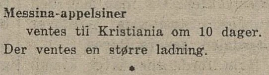 Men de virkelig gode og solmodne appelsinene måtte folk vente på, og spenningen var antageligvis stor da avisene kunne melde om at appelsinene for vinteren 1920 nå var på vei!