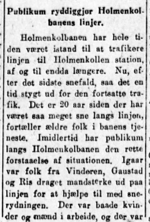 Heldigvis var dugnadsånden oppi finstrøket Holmenkollen sterk, slik at banen opp ble ryddet for snø. Jeg har en sterk mistanke om at ikke mange hadde gjort noe slikt oppi den åsen - eller andre steder - i dag. Dessverre.