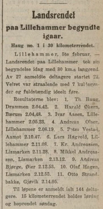 Ikke bare var nyheten i går om Thorvald Haugs påståtte stortåamputasjon forhastet journalistikk uten belegg, men tror du ikke at Haug, dagen etter at han ble friskmeldt av Gudbrandsdølen, gikk avsted og vant 30-kilometeren i det første landsrennet på Lillehammer dette året.