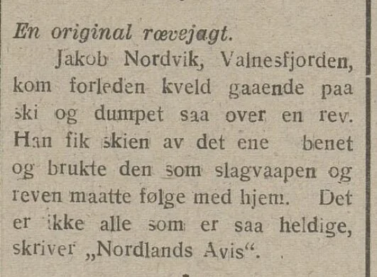 Jakob Nordvik la ingenting i mellom da en rødrev krysset hans vei på en skitur i 1920, og rappet til Mikkel med den ene skia så han sturta. Ikke akkurat jakt etter boka, men i 1920 slapp man vel unna med cowboytilstander.