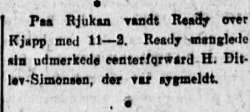 Så til et bandy-resultat. Kjapp - Ready 2-11.