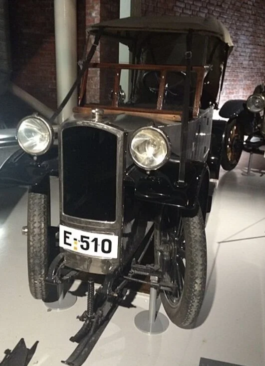 Dyrlege Blystads meier montert på en bil. Bildet er tatt i 1924, og finnes i Digitalarkivet.