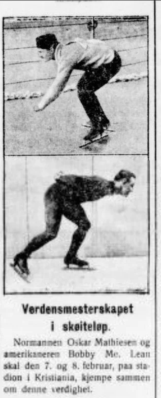 Ei god uke senere skulle Oscar Mathisen få sin revansje over amerikaneren på et fullsatt Frogner stadion - og nordmannen kunne overta tronen som verdens beste skøyteløper for en stund. Mathisen satte verdensrekord på 500 meter med tiden 43,3.