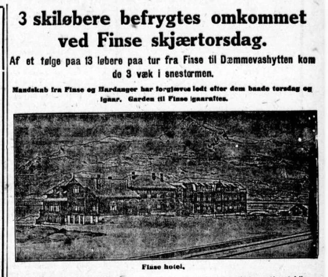 Langfredag 1920 ble en trist dag for alle som var innlosjert på Finse hotell. De våknet opp til det som skulle vært en flott påskedag på fjellet, men våknet i stedet til uvær og nyheten om at tre personer var savnet etter at det blåste opp kvelden før.