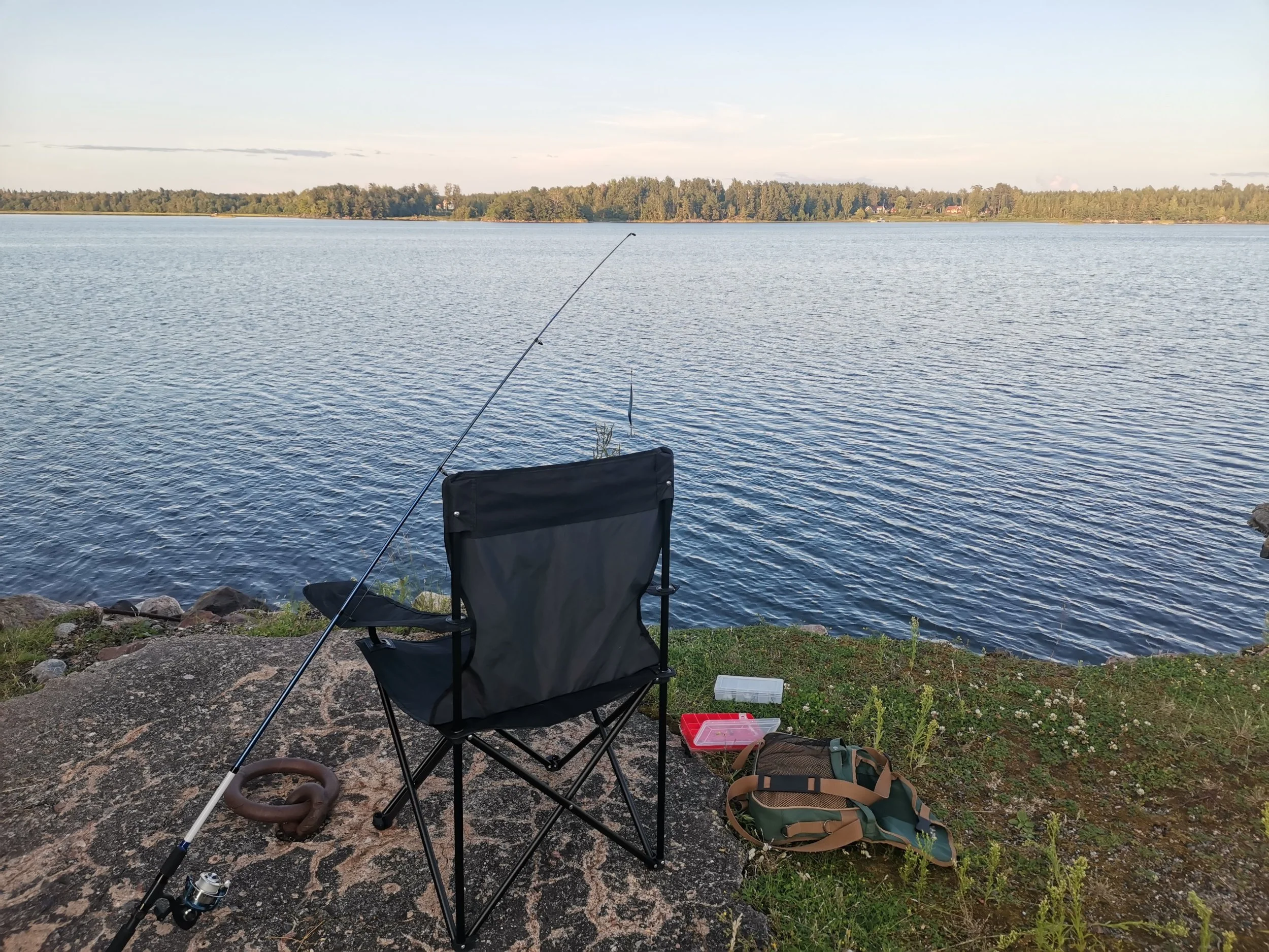 Nå var de på tide å prøve havsfisket. Jeg fant frem stanga og campingstolen, og gikk bort til den gamle murbrygga, rett bortenfor et eldre bygg som stod på området, og minnet oss om en tid som ikke lenger er. Da det sikkert var aktivitet her i en helt annen form enn i dag.
