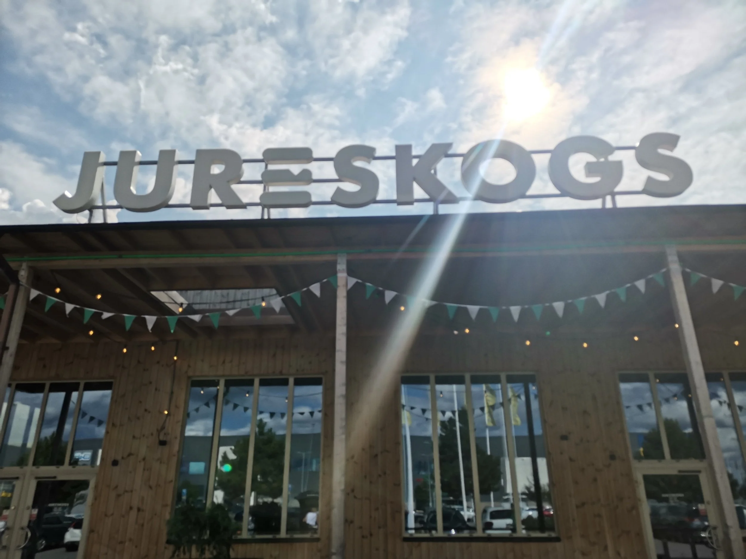 Jeg skimtet Jureskogs på et skilt, og bestemte meg for å kjøpe turens første middag. Jeg ble fan av denne kjeden da jeg testet den i Göteborg i fjor. Dyrere enn McD, men lang, lang bedre.