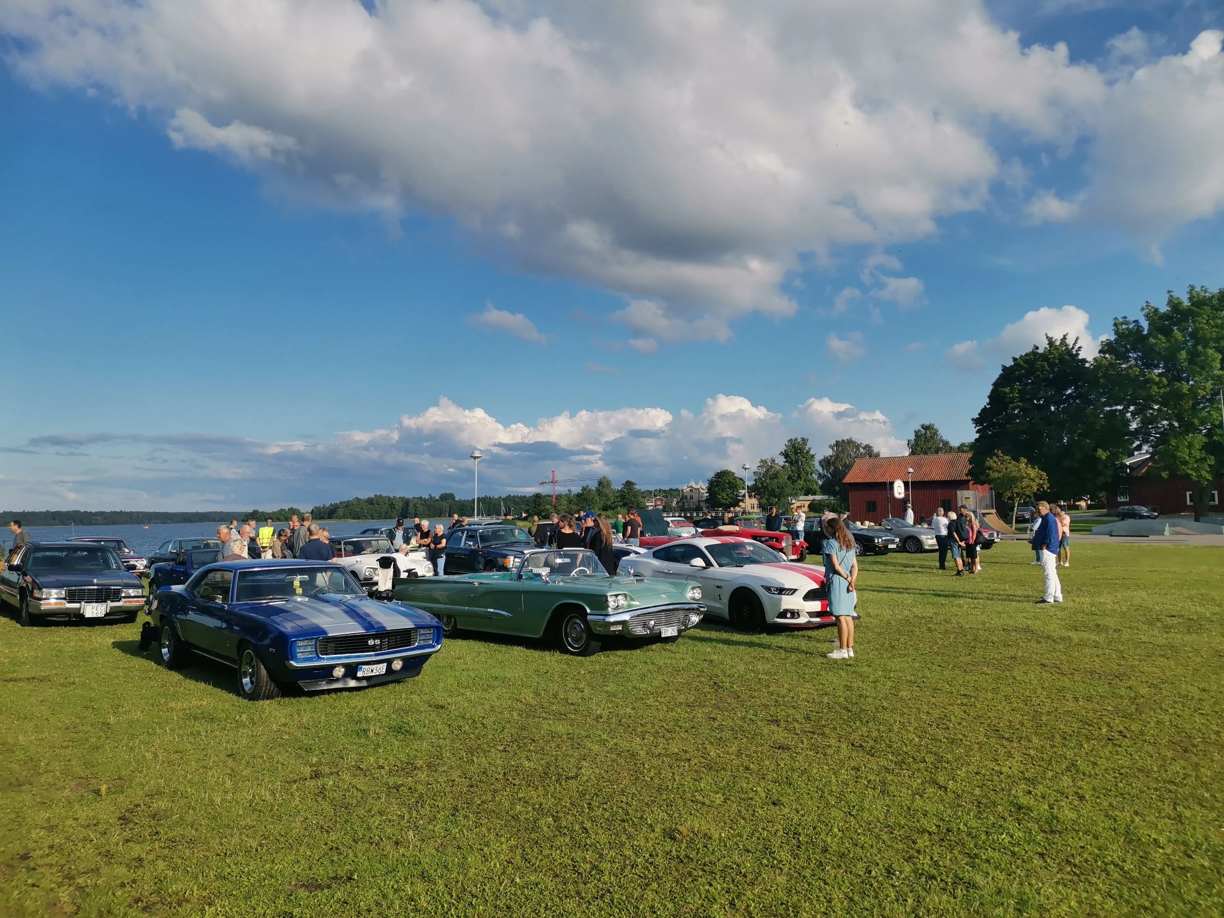 Godt fornøyd med kjøpet, så tok jeg en sving innom sentrum. Det var ikke stort å se der, annet enn en trivelig liten brygge, med noen smekk fulle uterestauranter, og en gjeng amcar-entusiaster som hadde samlet seg på plenen utenfor.