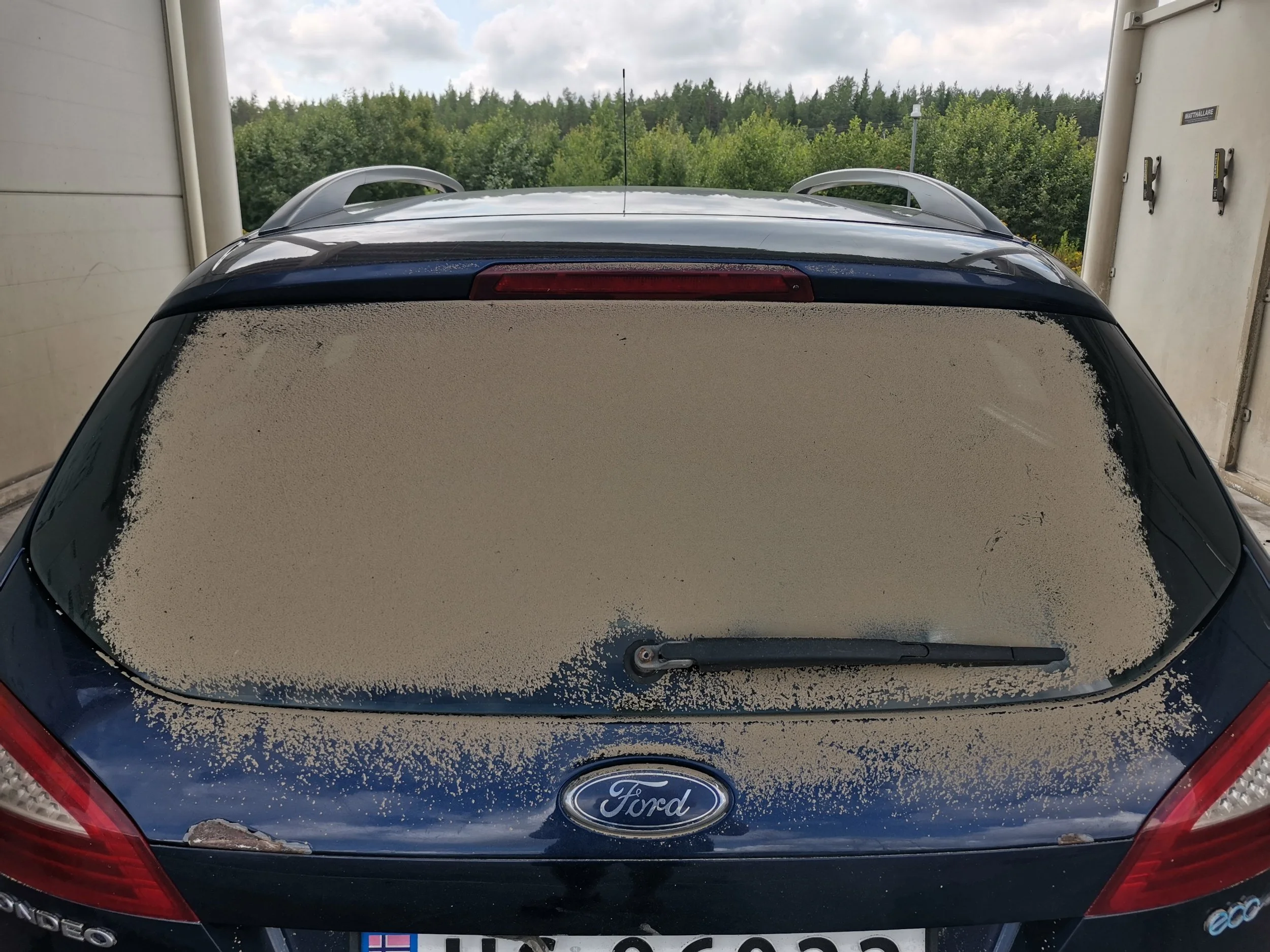 Da jeg til slutt fikk asfalt under dekkene igjen, så kunne jeg ikke se noe gjennom bakruta - så neste stopp nå ble den selvvasken jeg også hadde vært på i går.