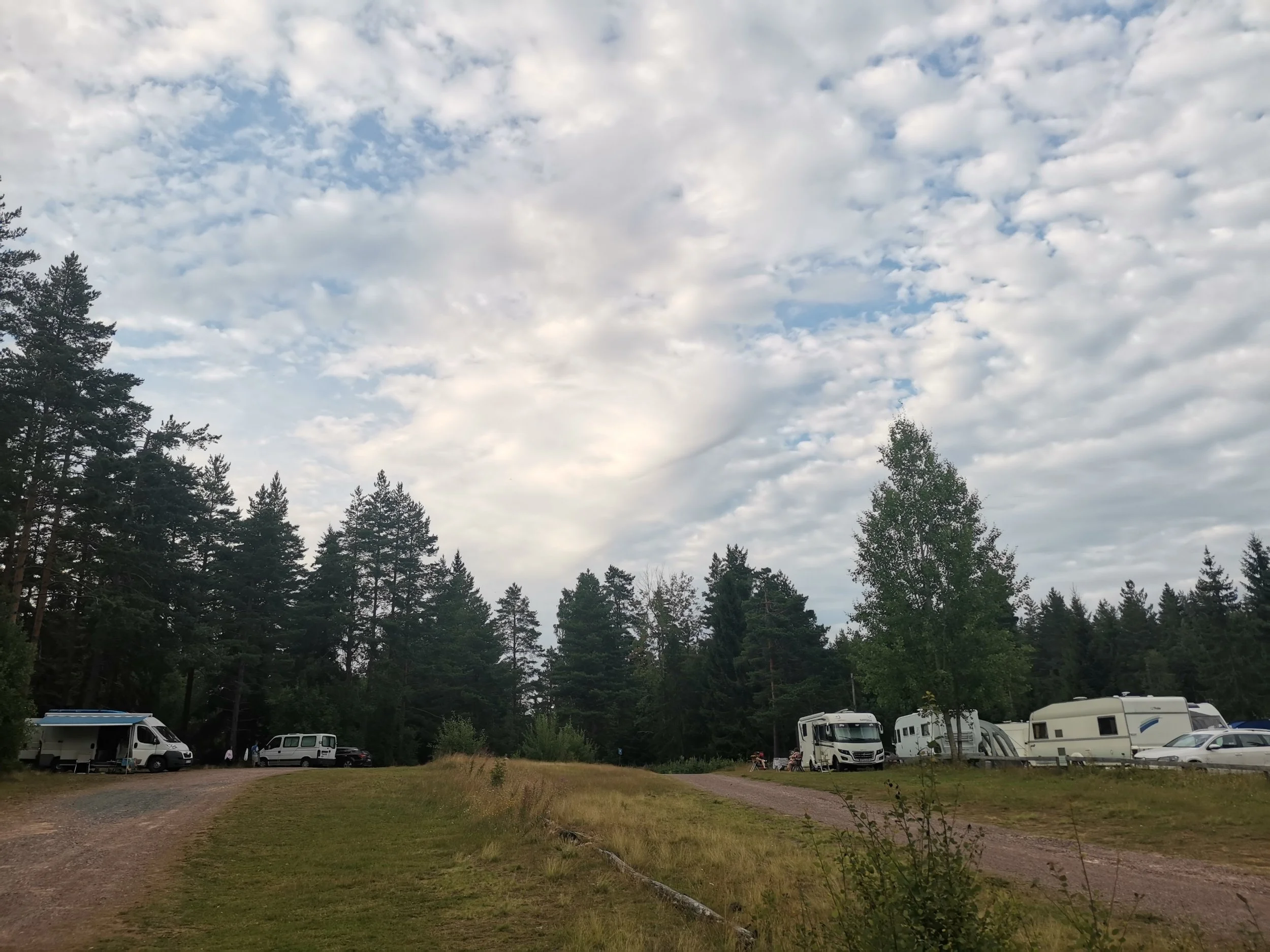 Da jeg kom frem, så var det allerede et knippe campingbiler der. Noen eldre par, men også en god del barnefamilier, som nok hadde funnet idyllen her ved den lille innsjøen - som fristet med en lang og langgrunn sandstrand.
