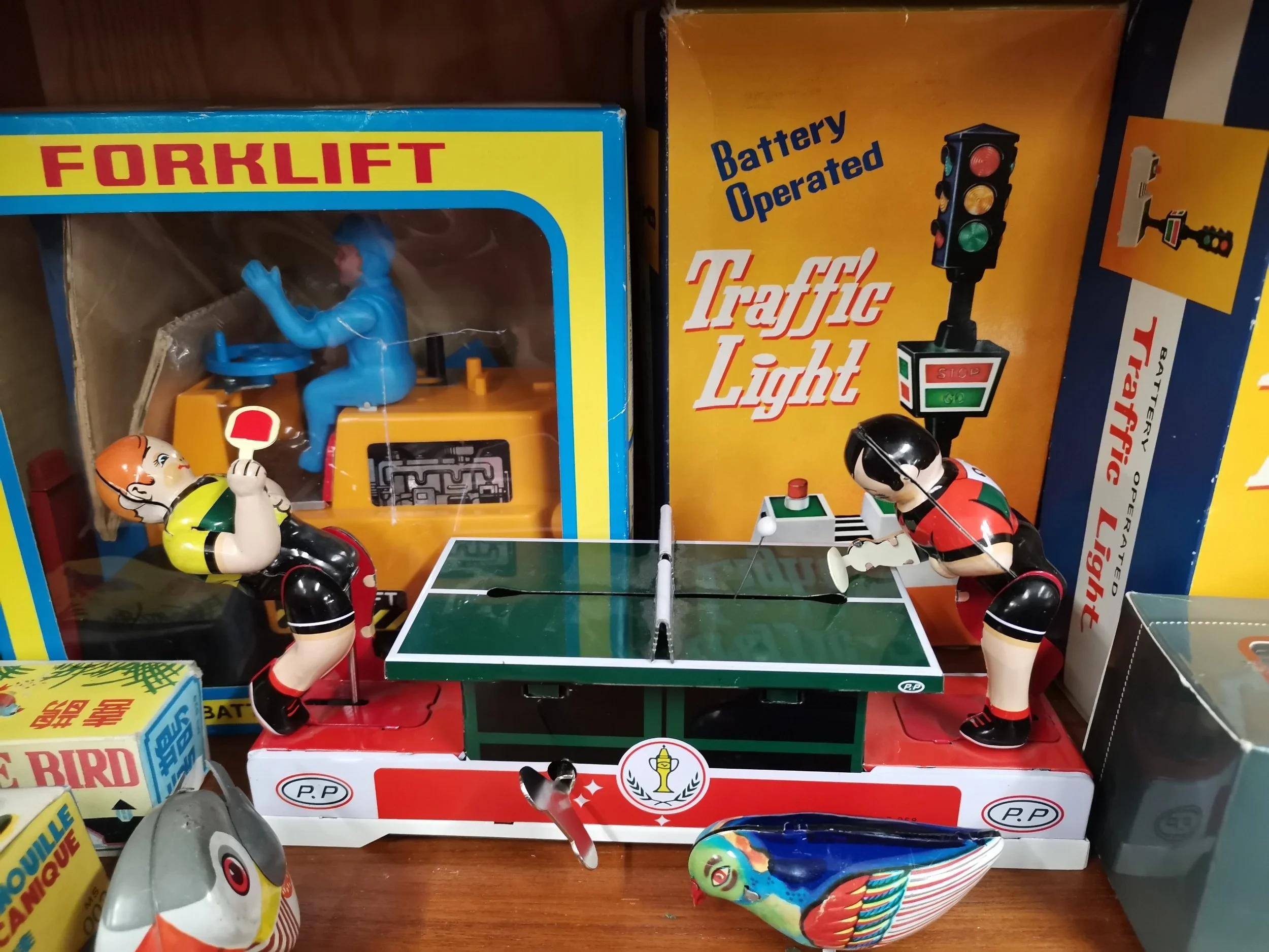 Han gikk bort til en fantastisk sak som så hjenmelagt ut, men usedvanlig detaljert og kreativt. Et slags lite diorama fra en gammel dansehall, med både dansende, og fullt band. Jeg hadde gått forbi den på en tidligere runde, men nå strakk han hånda bak, og trykket inn en knapp som startet både musikk og bevegelse. Han fortalte at det var en nabo som hadde bygget den, som var møbelsnekker. En lokal Reodor Felgen. Akkurat som Arnold selv.