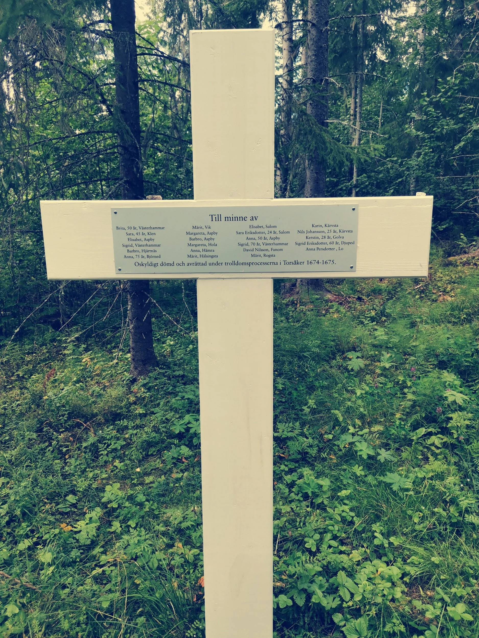 Jeg ruslet oppover stien, som buktet seg gjennom skogen, og passerte en del minneskors, med fornavn og alder på alle som ble brent på bålet. Om ikke annet gjorde det den grufulle historien mer ekte.