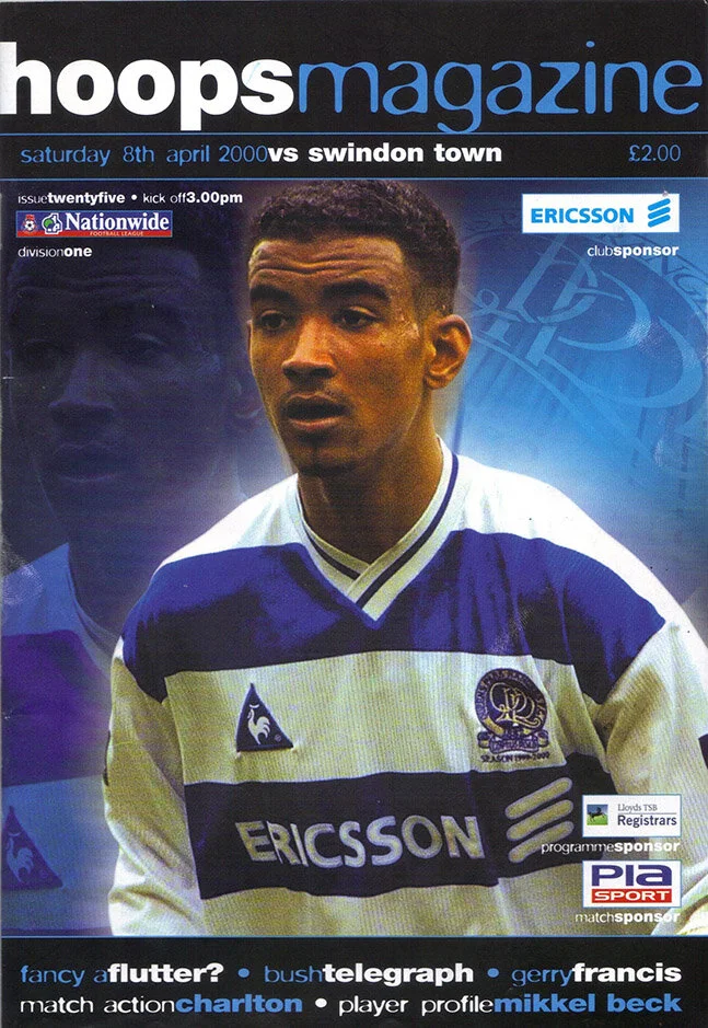 Swindon tapte 1-2, men det var stas å få se min favorittspiller på det laget, Giuliano Grazioli, score et vakkert mål for Swindon på stupheading. Grazioli kom til Swindon foran 1999/00 sesongen fra Peterborough, men hadde da spilt et par sesonger på utlån i non-league. Der var han i 1998 med på å slå ut ligalaget Swindon med det daværende non-league laget Stevenage, og i neste runde scoret han utligningen som sikret omkamp mot Premier League-laget Newcastle. Grazioli ble hentet til Swindon av manager Jimmy Quinn, men var uheldig og brakk beinet like etter at han kom til klubben. Han gjorde comeback mot slutten av sesongen, og scoret fem mål på de seks siste kampene - deriblant scoringen jeg fikk se mot QPR i april 2000.