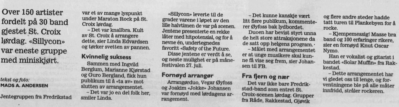 Men sommeren 2002 hadde Silvertongue, som nettopp hadde byttet navn, landet en spillejobb (jobb og jobb, det var vel mer et tapsprosjekt for å komme ut en tur) i Fredrikstad. På St. Croix-huset skulle de ha noe de kalte for Maraton-rock. Datoen var lørdag 15. juni, og en stund i forveien sier Stig; “Jo, også har jeg meldt på Drowning Sarah, også”.