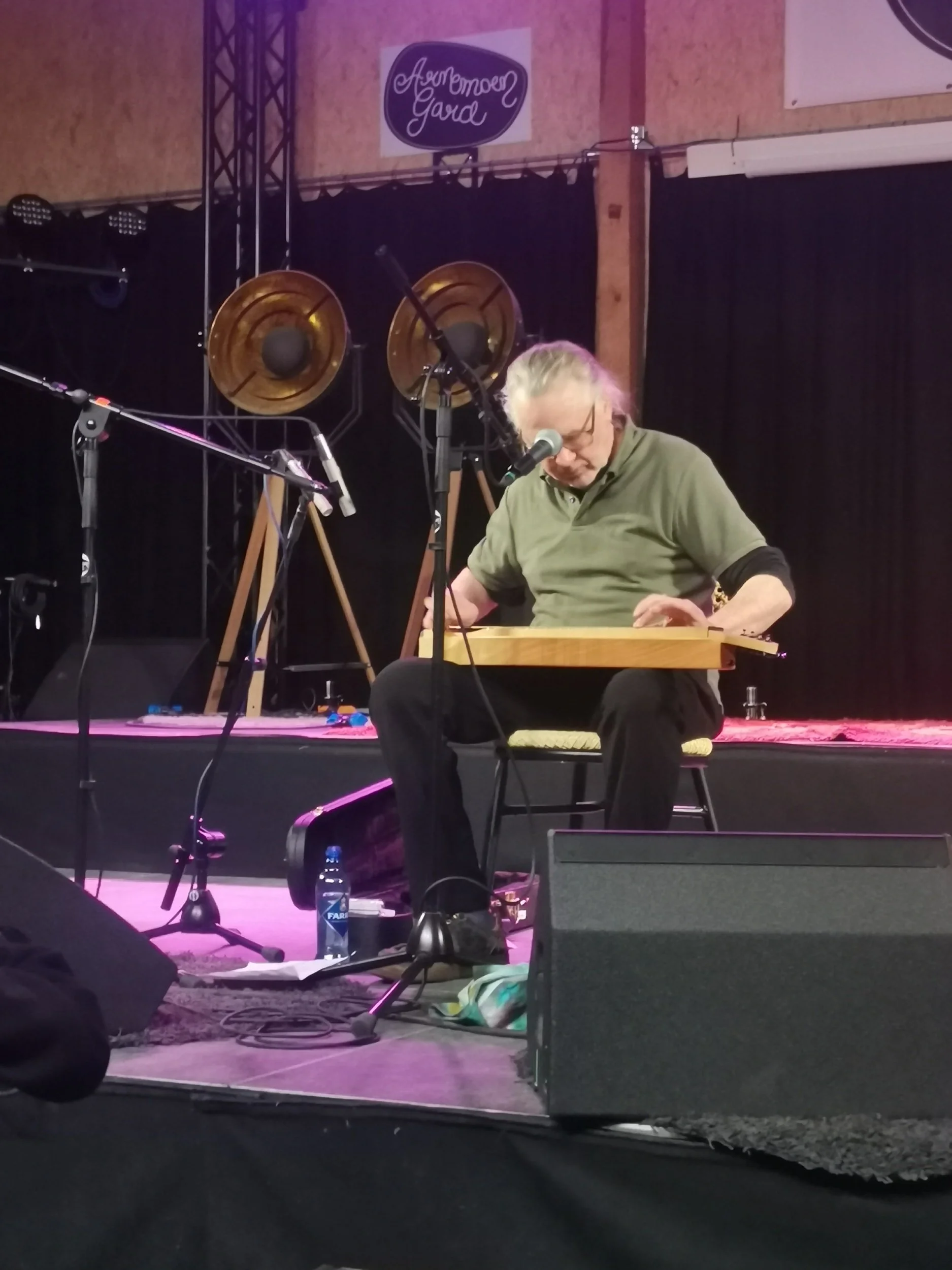På arbeidernes dag var det brukbart med folk innenfor dørene, deriblant en god kontigent med venner fra Gjøvik og Toten. Stort sett lojale Arnemoen-folk, men også noen nye fjes. Mange fikk nok hakeslepp da de så Olson entret scenen med kun to instrumenter. En dulcimer, og hans nye favorittleketøy: en armensk qanun. Ingen gitar i sikte, altså.
