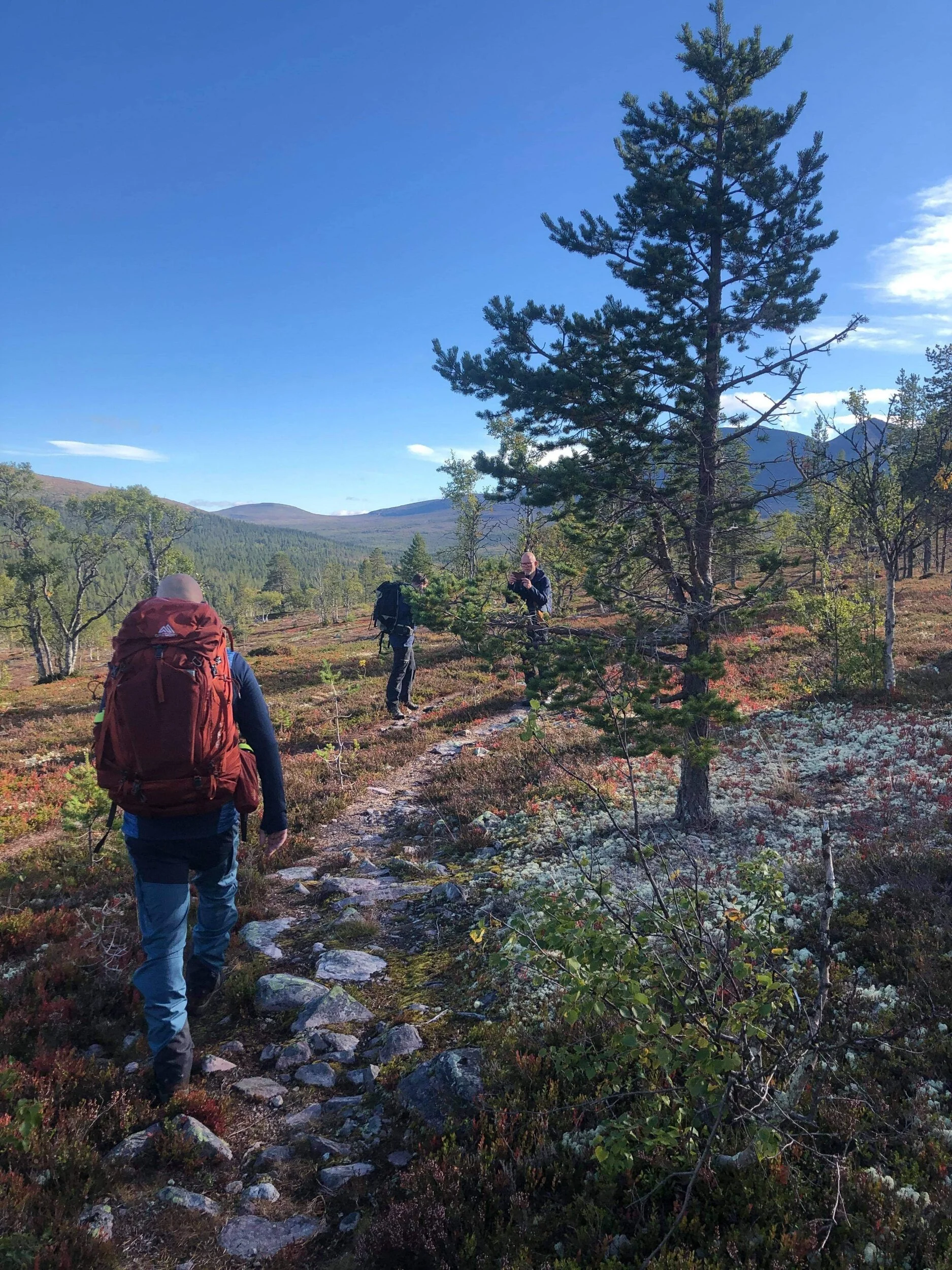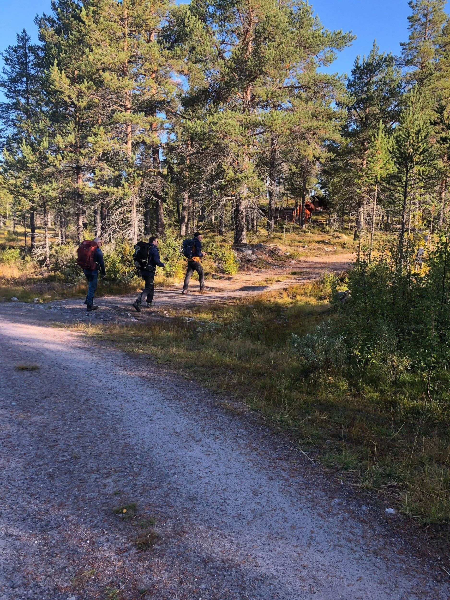 Været var upåklagelig, så i solskinnet fattet vi friskt mot og labbet i vei innover skogsbilveien som skulle ta oss til stien. 12,5 kilometer til Sølen, viste skiltet. Vi hadde satt av dagen, så her var det ingen som skulle stresse. Kun fire middelaldrende menn og naturens elementer. Som en slags fattigmanns Hemingway-kvartett.