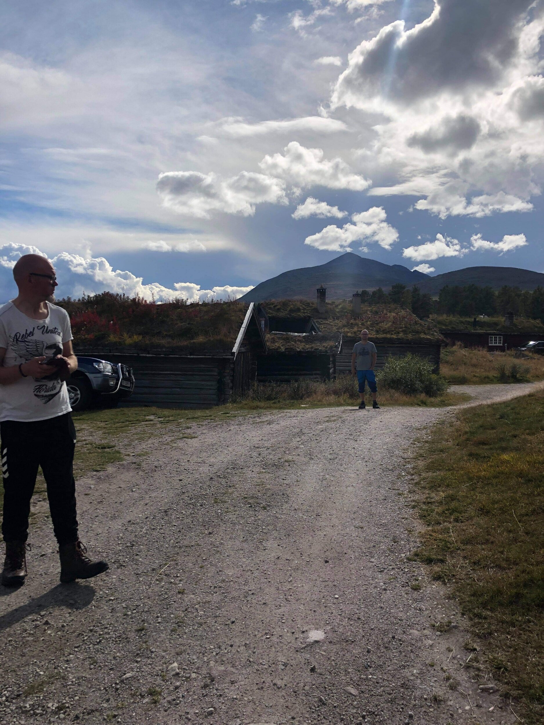 Når vi først hadde rotet oss til Alvdal, så ble returen tilbake til Lillehammer og Gjøvik via både Folldal og Atna. Vi svingte oppom Folldal gruve for å ta noen bilder, og etter det stoppet vi også ved et utkikkstårn som fristet med en kikkert rett mot Snøhetta i Rondane. Der klarte Vladimir så klart å plumpe rett oppi ei fersk ruke med sauemøkk, så mens de andre kikket på Snøhetta, så satt han og prøvde å pirke ut fersk bæsj fra de intrikate sålemønsterene med bark!