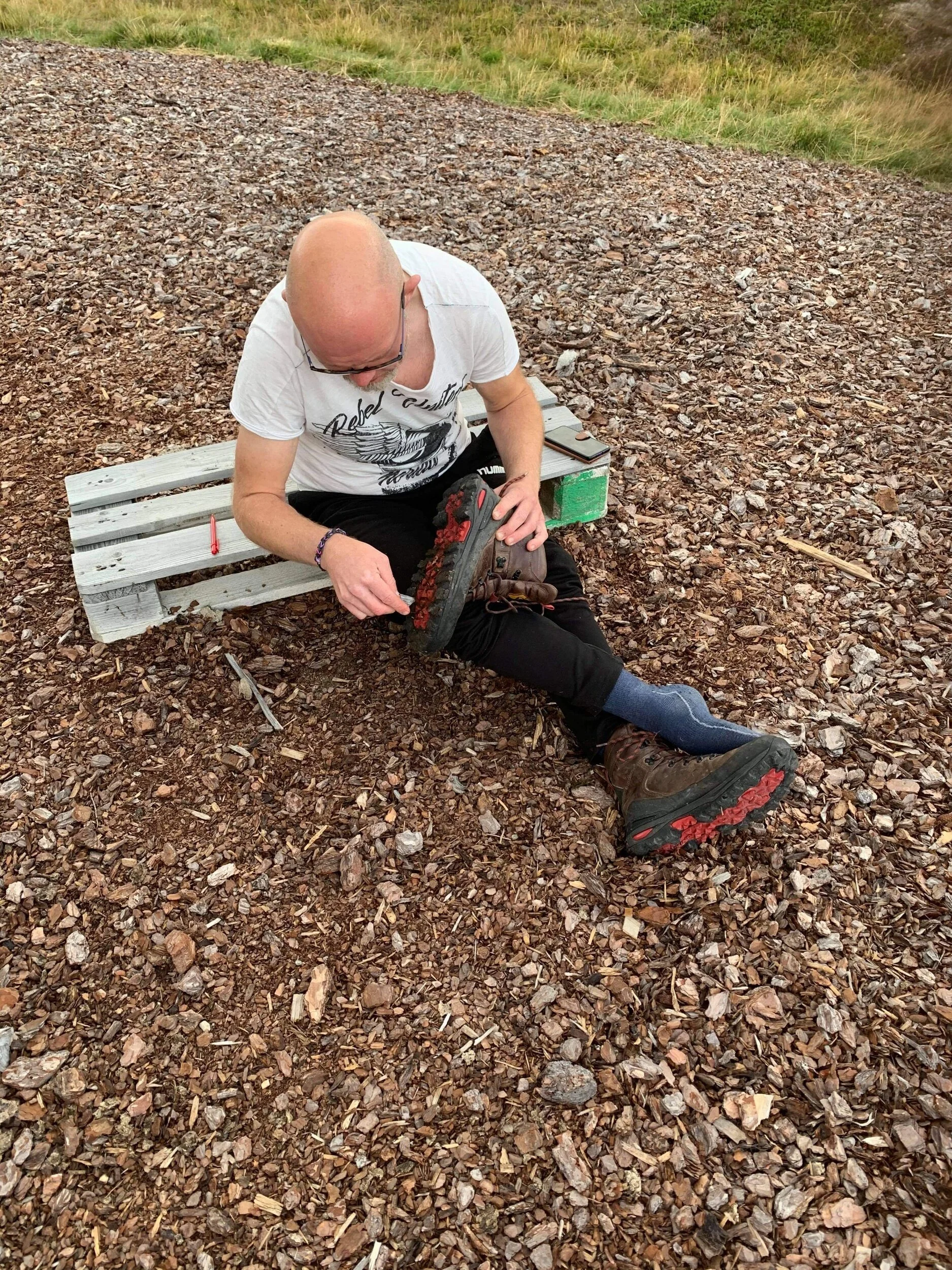 Vi stoppet for nok en matbit og en varm kaffekopp ved enden av Skardtjønna, og Estragon fikk heldigvis pakket om, og satt igjen den store 75-liters sekken.