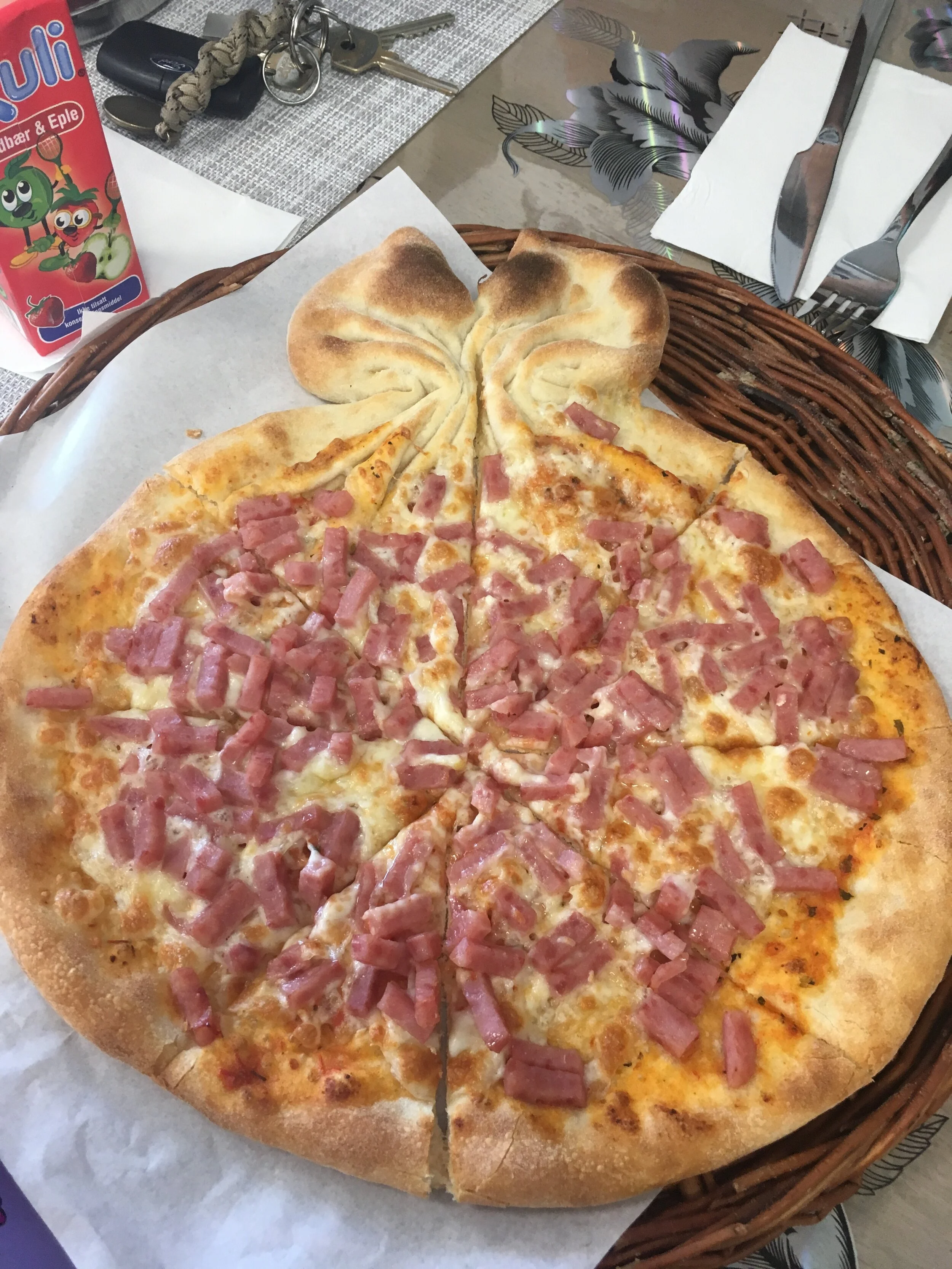 Sulten begynte å melde seg, så vi svingte av mot Askim ved fem-tida og fant oss en klassisk pizzasjappe - slike du finner i alle byer og små tettsteder.