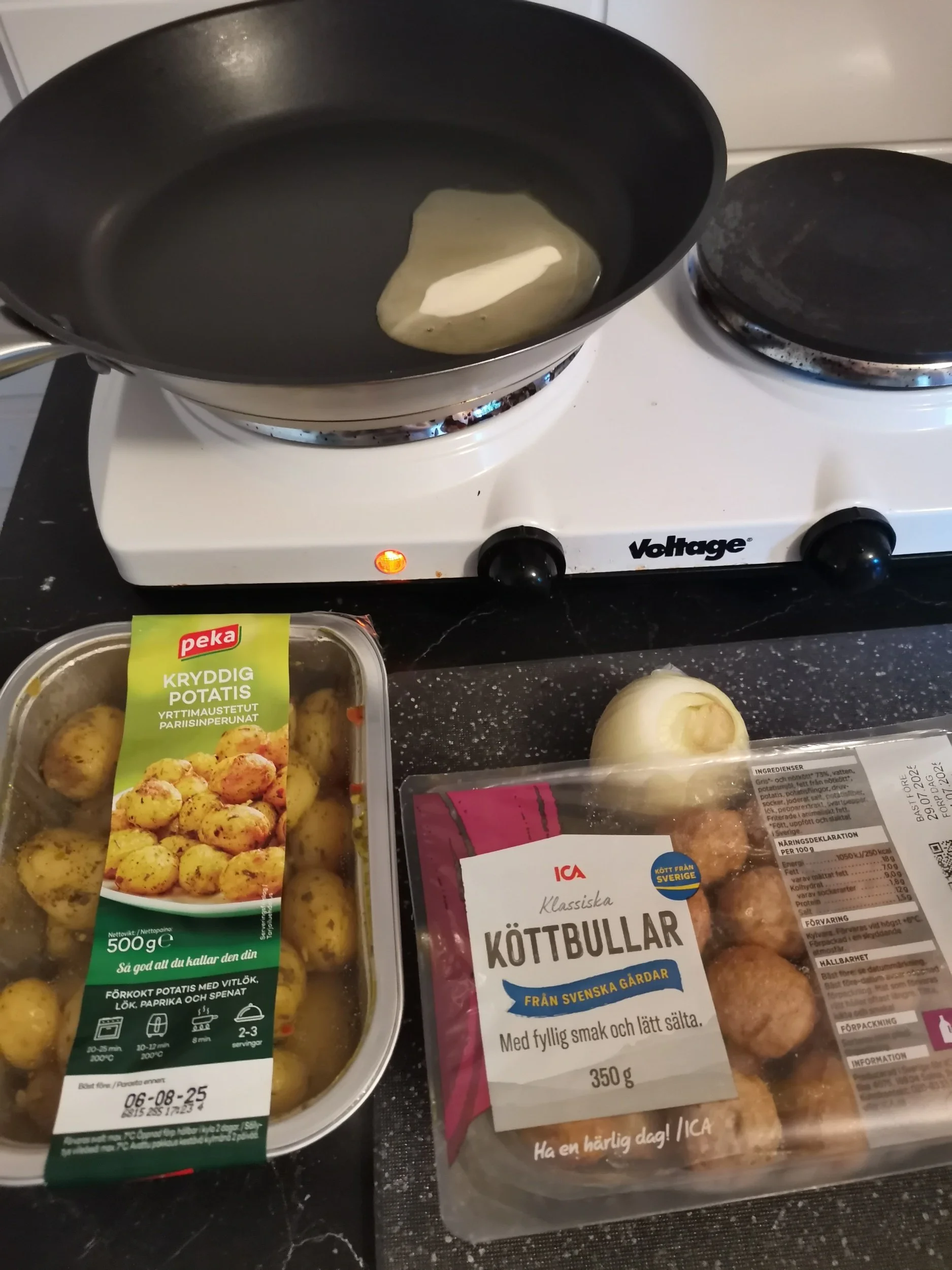 Vi hadde ikke fått vært innom noen butikk, så vi bråbestemte oss for å ta den korte turen inn til Robertsfors for å proviantere litt på ICA. Vi hadde egentlig planlagt fisk til middag i kveld, men trengte litt tilbehør. Derfor kjøpte vi med oss ei pakke poteter, som kun skulle varmes lett i panna. Klok av skade tenkte jeg vi også trengte litt reserve i tilfelle vi ikke skulle få napp, og jentene landet da på ei pakke svenske kjøttbullar. When in Rome og så videre.
