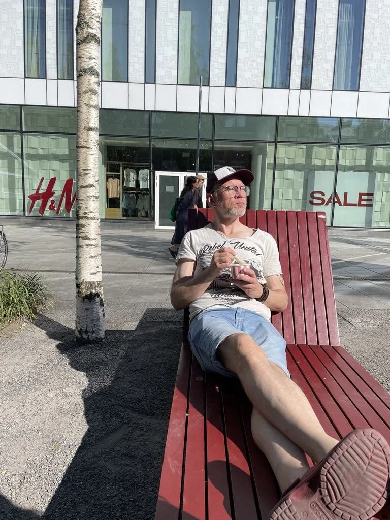 Jeg så mitt snitt til å snakke litt ishockey, uten at jeg kan berope meg til å være en stor hockeyfantast. Det viste seg at MoDo hadde rykket ned til nivå to i Sverige, og var kun en skygge av seg selv. “Hva med hoppsporten”, prøvde jeg meg. Hun bare gliste. “Nei, der tror jeg ikke det har hoppet noen på flere år”, skrattet hun. Jeg nikket høflig, og ønsket henne fortsatt god sommer, før vi vandret ut igjen i solskinnet.