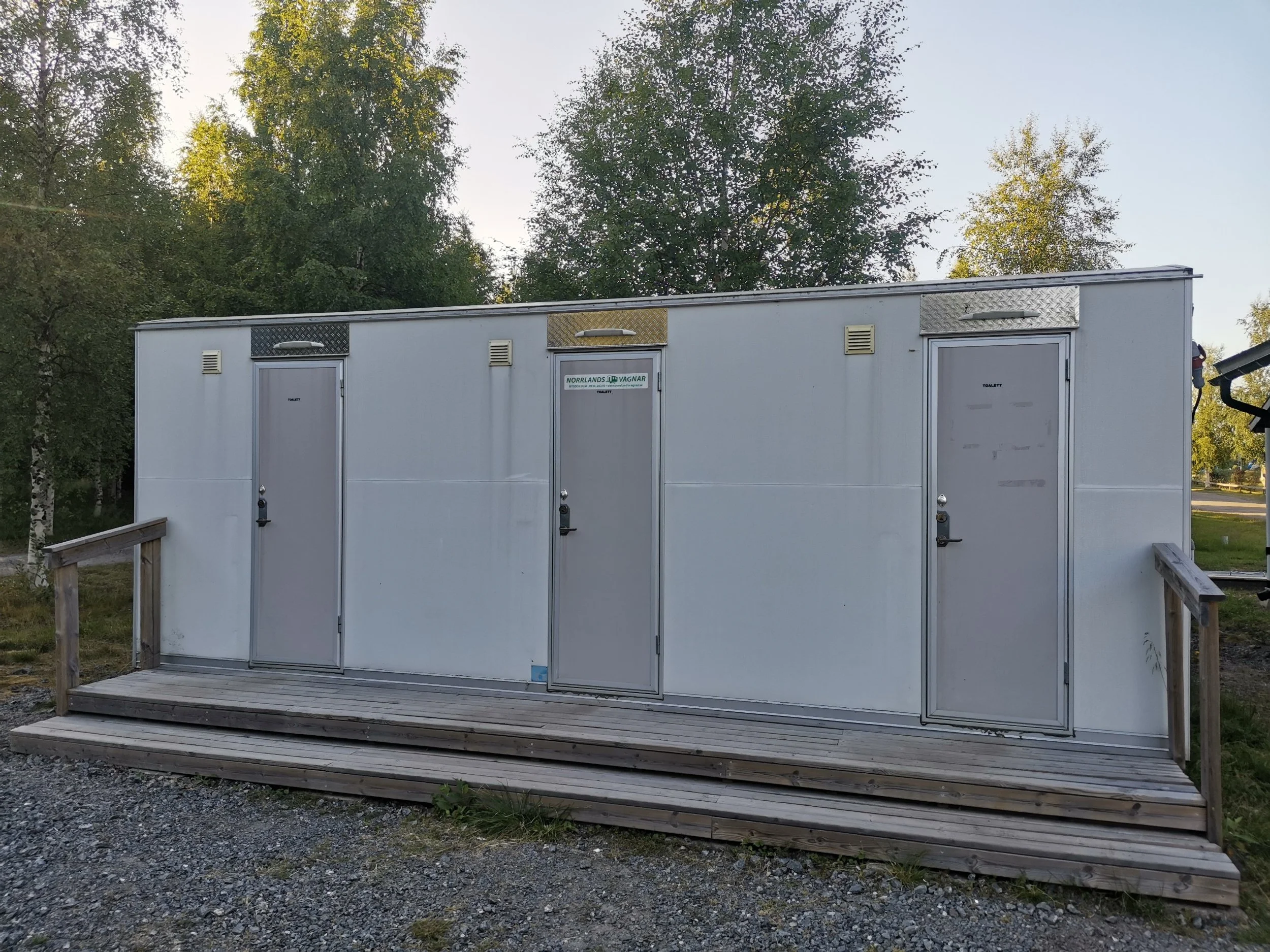 Da vi ordnet oss for natta i går kveld hadde vi oppdaget at den litt stusselige dusjen på sanitæranlegget var utstyrt med ei gammel myntinnkastkasse. “Fem svenske kroner pr. seks minutter”. Vi hadde ikke en eneste svensk femmer, så derfor ble det også til at hele trioen slo to fluer i en smekk i Storsjön - med både dusjsåpe og shampo for hånden, på kroppen - og i håret.