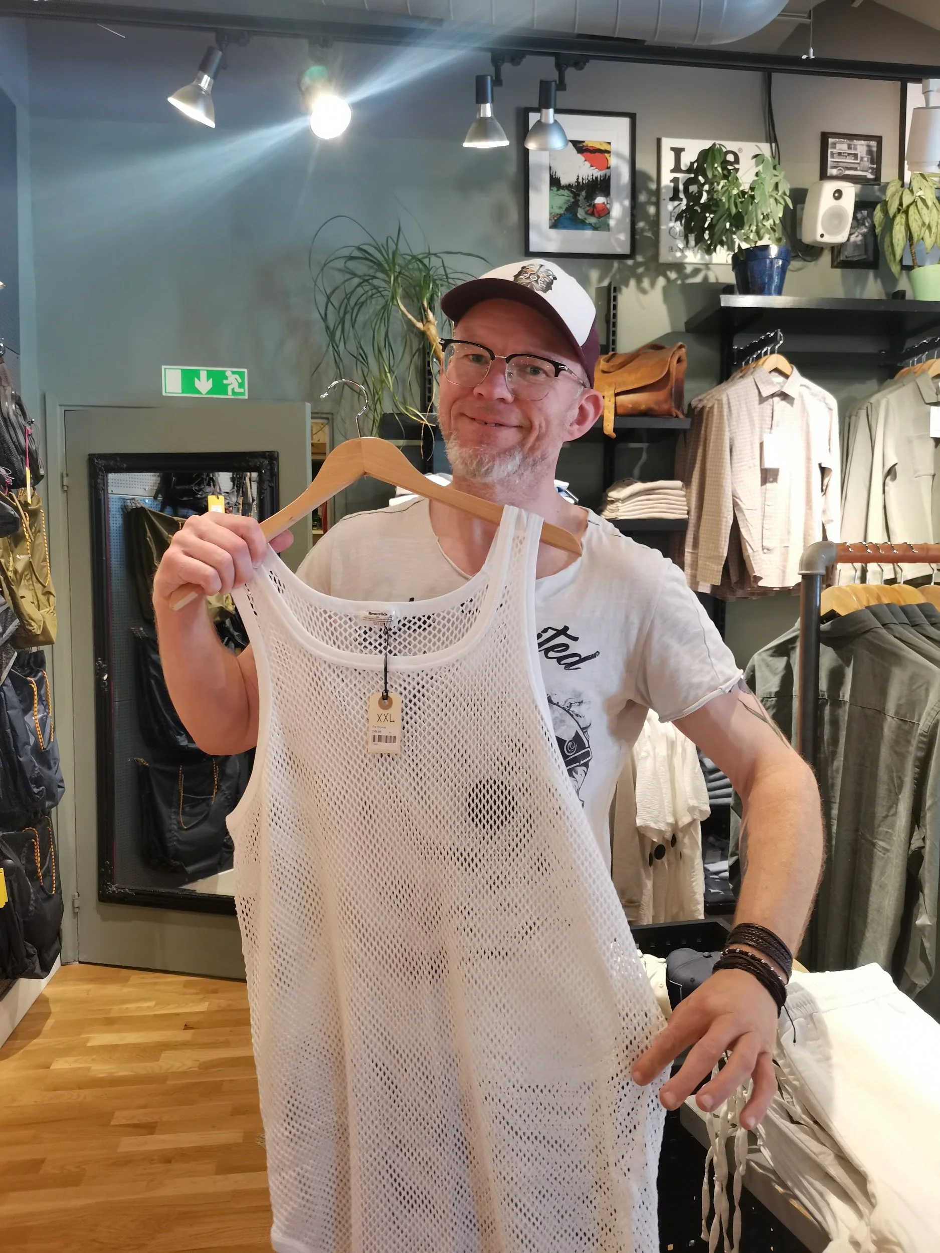 Fattern på sin side ble trukket inn i en butikk som het “Nollnitti”. Ikke primært på grunn av det de solgte i butikken, selv om de også hadde en god del spennende produkter - men mest av alt fordi butikken var kledelig innredet med gamle, ikoniske artistbilder og kunstverk med slike. I tillegg hadde de et solid utvalg med nettingcaps, og andre nettingprodukter - som den gode, gamle helsetrøya, som jeg ikke har akselleret siden militæret i 1998. Jeg hørte min indre Onslow kalle, men tenkte samtidig at nok fikk være nok med singlet. Jentene var skjønt enig, og veldig lettet over at fattern kun ville posere, og ikke handle.