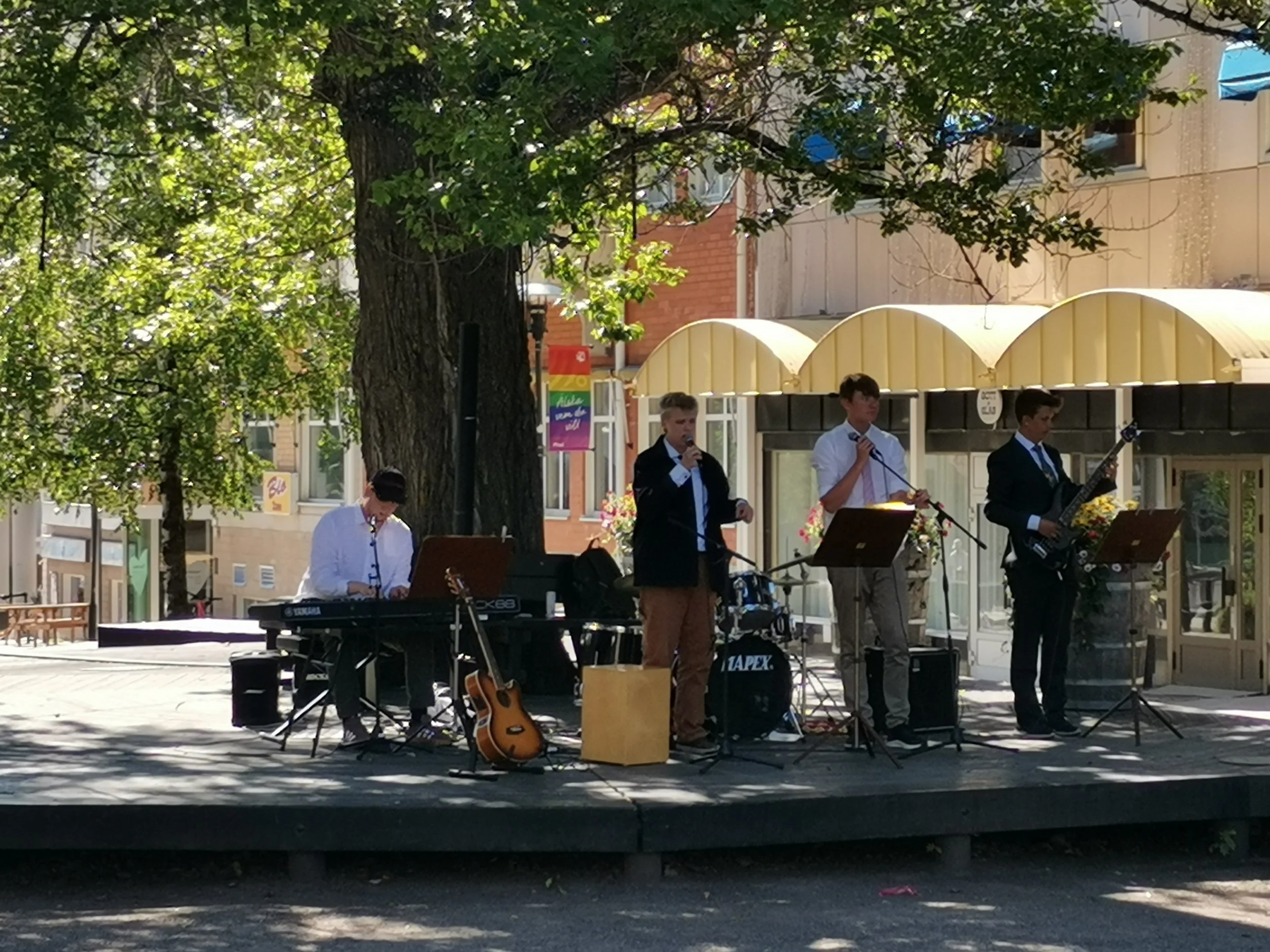 På et torg litt lenger borti gata hørte vi plutselig live musikk. Der hadde fem lokale unggutter stilt seg opp for å spille gratiskonsert for noen få fremmøtte kompiser og sikkert familie, samt at et knippe lydhøre turister eller lokale på fredagshandling også hadde stoppet opp for å lytte.