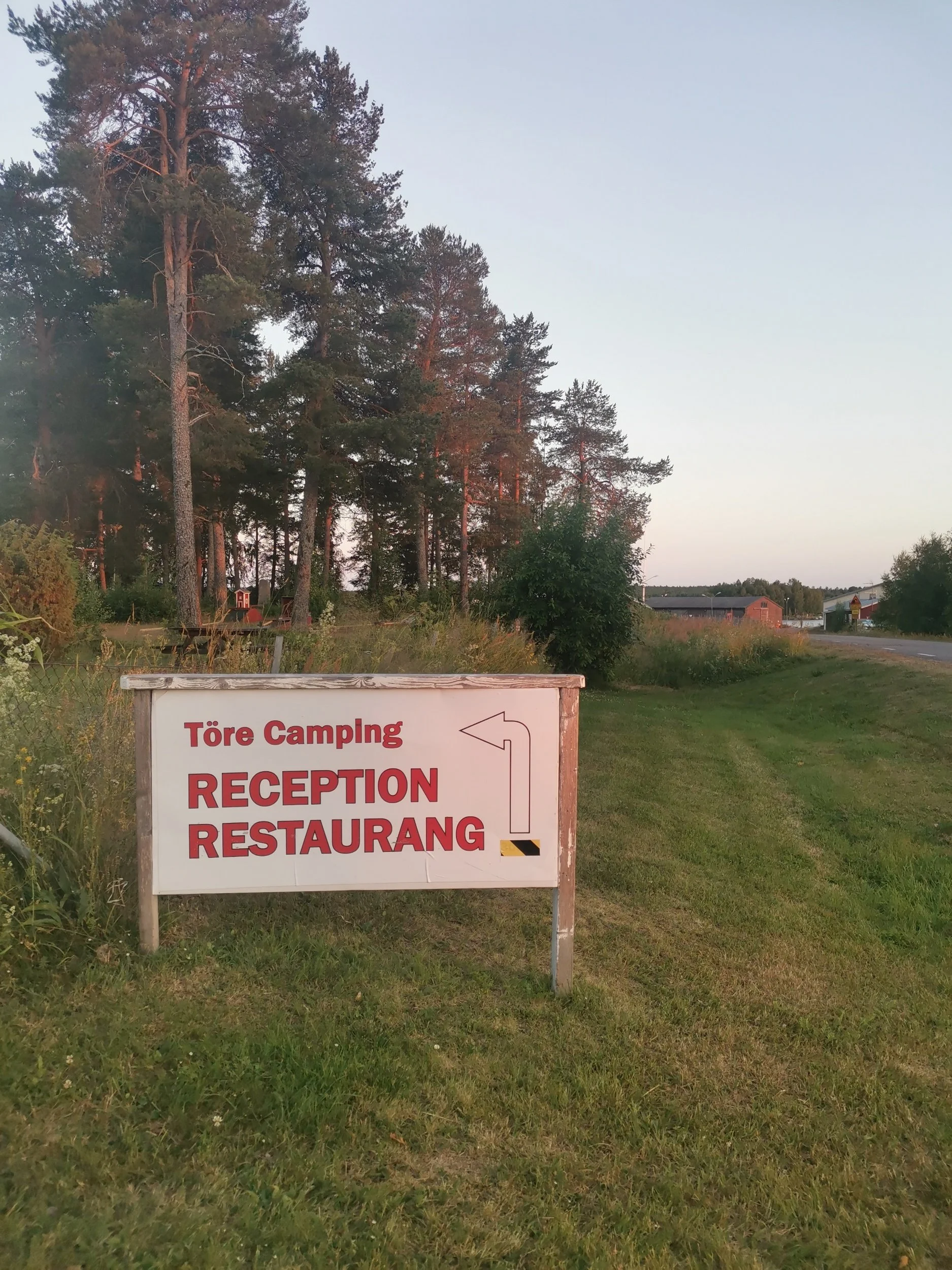 “Men det ligger en havscamping utenfor et lite sted som heter Töre”, sa jeg. “Vi kan jo stikke innom der å høre”. Like etter åpenbarte skiltet seg på E4. Töre camping nede ved Töre hamn.