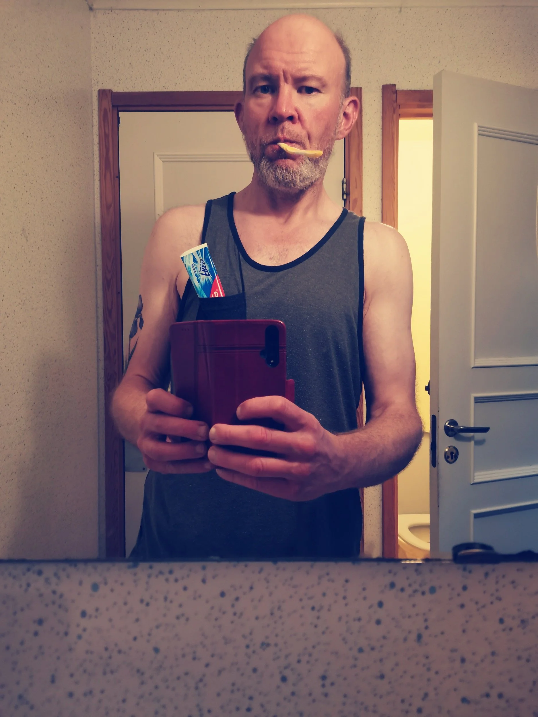 Etter frokost begynte alle tre å rydde sine egne greier, og pakke om og ut våre saker.På den tredje morgningen i ei ny campinghytte hadde jentene endelig begynt å få sommerferieroadtripdrillen tilbake i fingertuppene og hodet - og tok nå både egne initiativ, og viste at de visste hva som måtte gjøres uten at de trengte spørre fattern. Kry som en hane over effektiviteten tross ferietider, så kauket jeg ut spørsmålet; “Vi skal ikke ta et morgenbad da, nå som vi er så godt i rute?”.