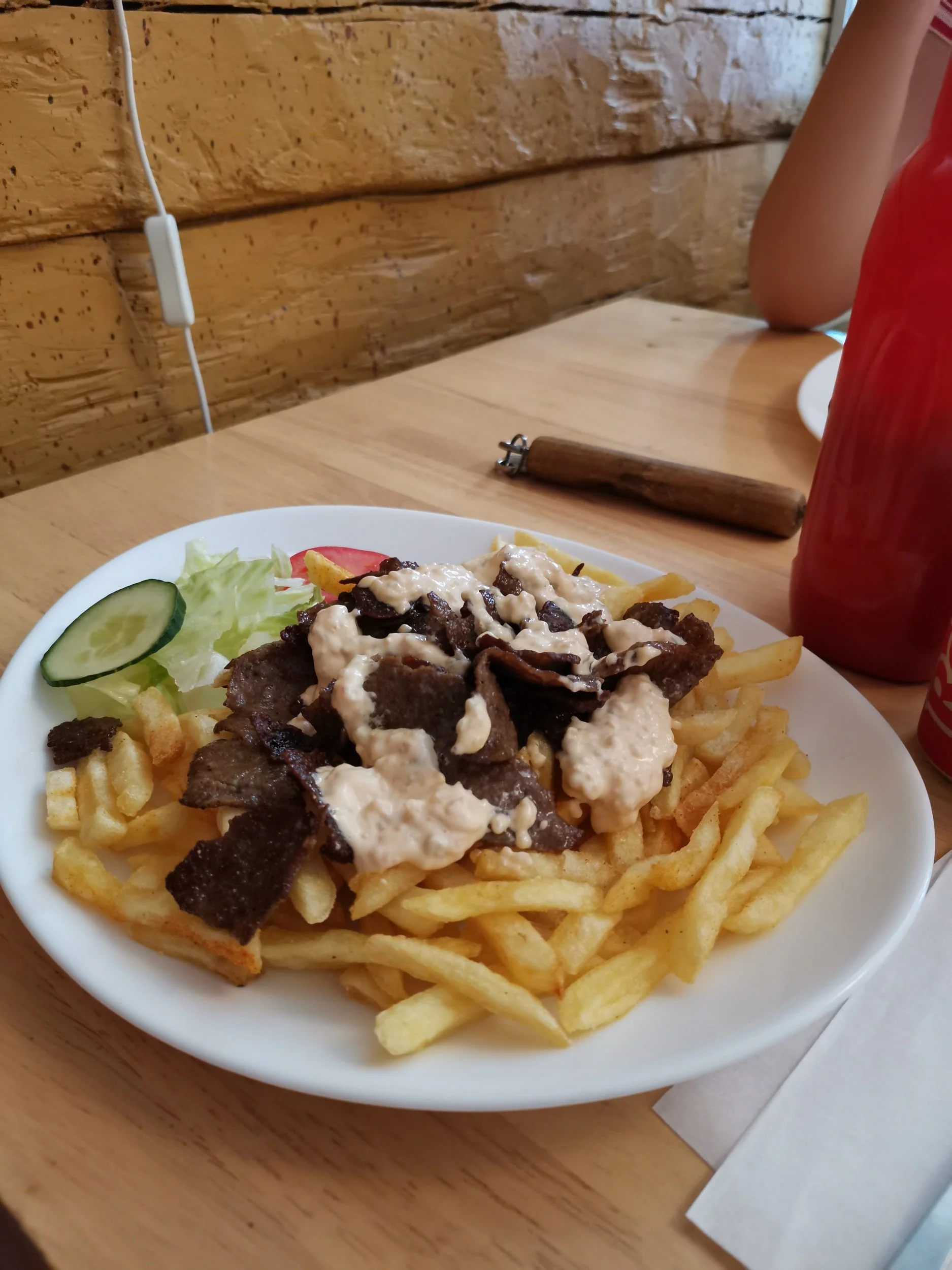 Jentene ble fysne på kebab. Jeg sa at de nok ikke ville få kebab slik de tenkte på kebab, men kebab i form av slike skiver i fryseposer som du får kjøpt på grensebutikkene. De hadde allikevel låst seg til tanken om kebab, og selv om jeg hadde rett - så virket det som at det også smakte mer enn godt nok som middag på campingen. Det er noe eget med å spise et varmt måltid på selve campingplassen, også. Det er ikke ofte vi har ramlet borti campingplasser der det faktisk er mulig.