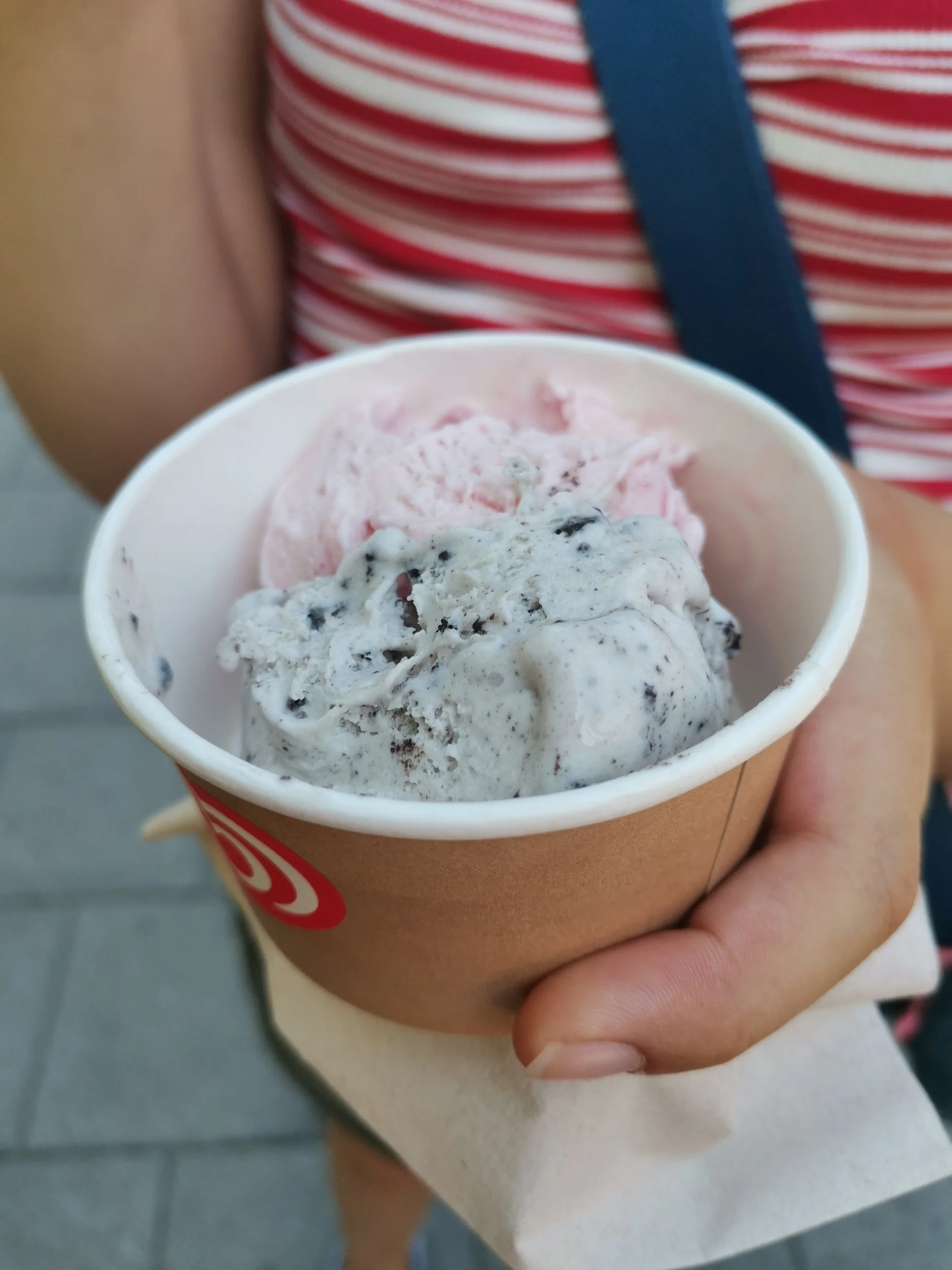 “Vi får kjøpe oss en is i stedet”. Den første og beste isvogna fikk jeg litt dårlige vibber for. Utvalget så begrenset ut, og det var ikke akkurat tjukt med folk som stimet utenfor. “Vi sjekker om det er flere”, sa jeg til jentene - og så trasket vi videre. Uten hell.