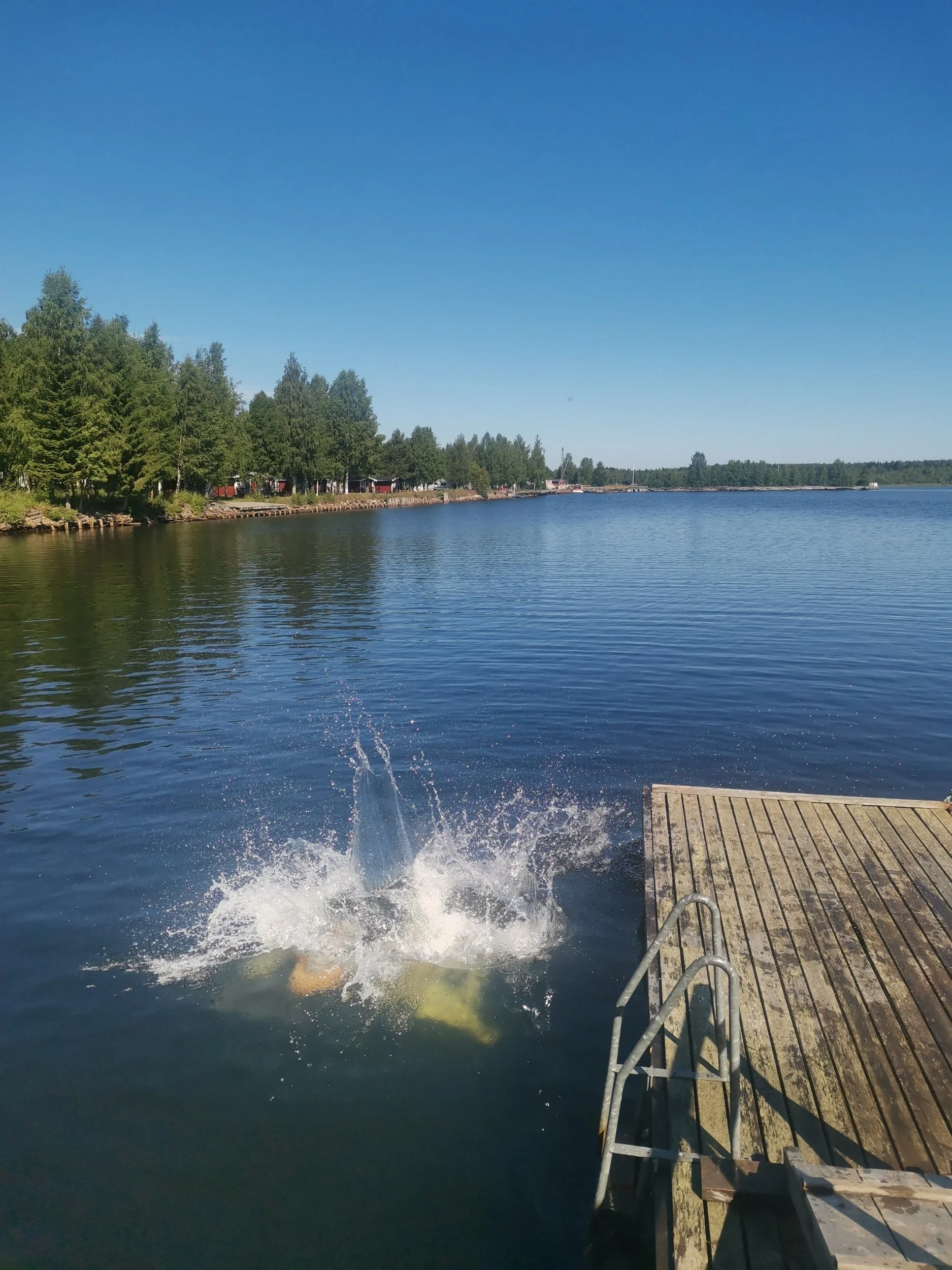Der ute var det brådjupt alle steder, og ingen sjanse for noen av oss å stå. Fattern flekket av seg, og bestemte seg for å hoppe rett uti det. Etter et par dype drag på innpust, så kastet han seg uti med hodet først. Iiiik. Det var langt kaldere enn i innsjøen vi badet i i går, men absolutt innafor med tanke på at vi var langt nord, og badet i selveste Østersjøen. Bottenvika.
