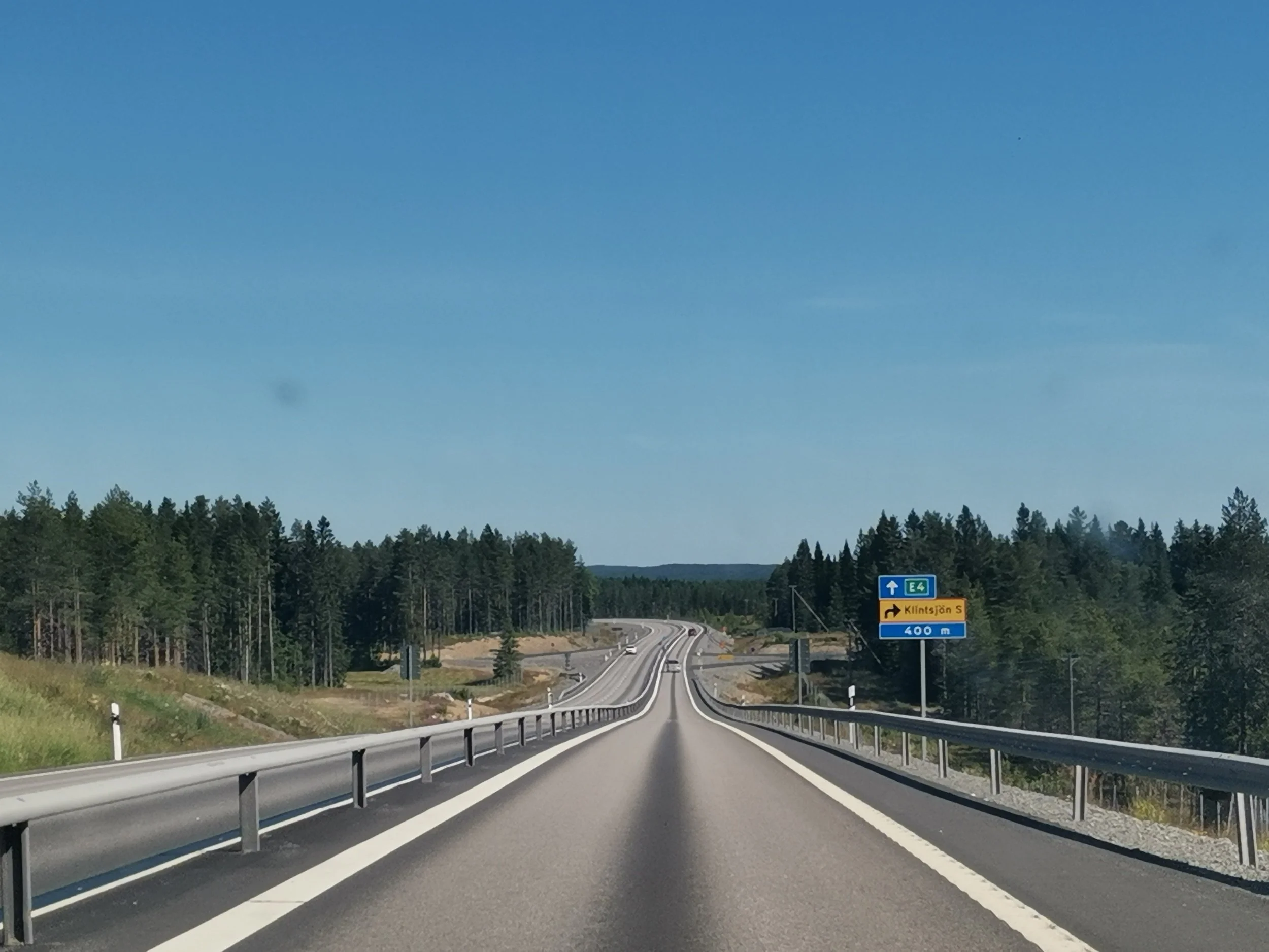 På vei til Piteå gikk ferden fortsatt gjennom skog og atter skog. E4 går ganske langt innenlands, og det er lite kyst og Bottenvika å se. For å få litt selskap på turen, så ringte vi opp kjæresten hjemme i Norge, som ble med oss litt på ferden videre - og vi fikk delt litt oppdateringer av hvordan det gikk både her og der. Ting vi stort sett visste fra før takket være livet på Snap, men det var veldig koselig å både se og høre hverandre.