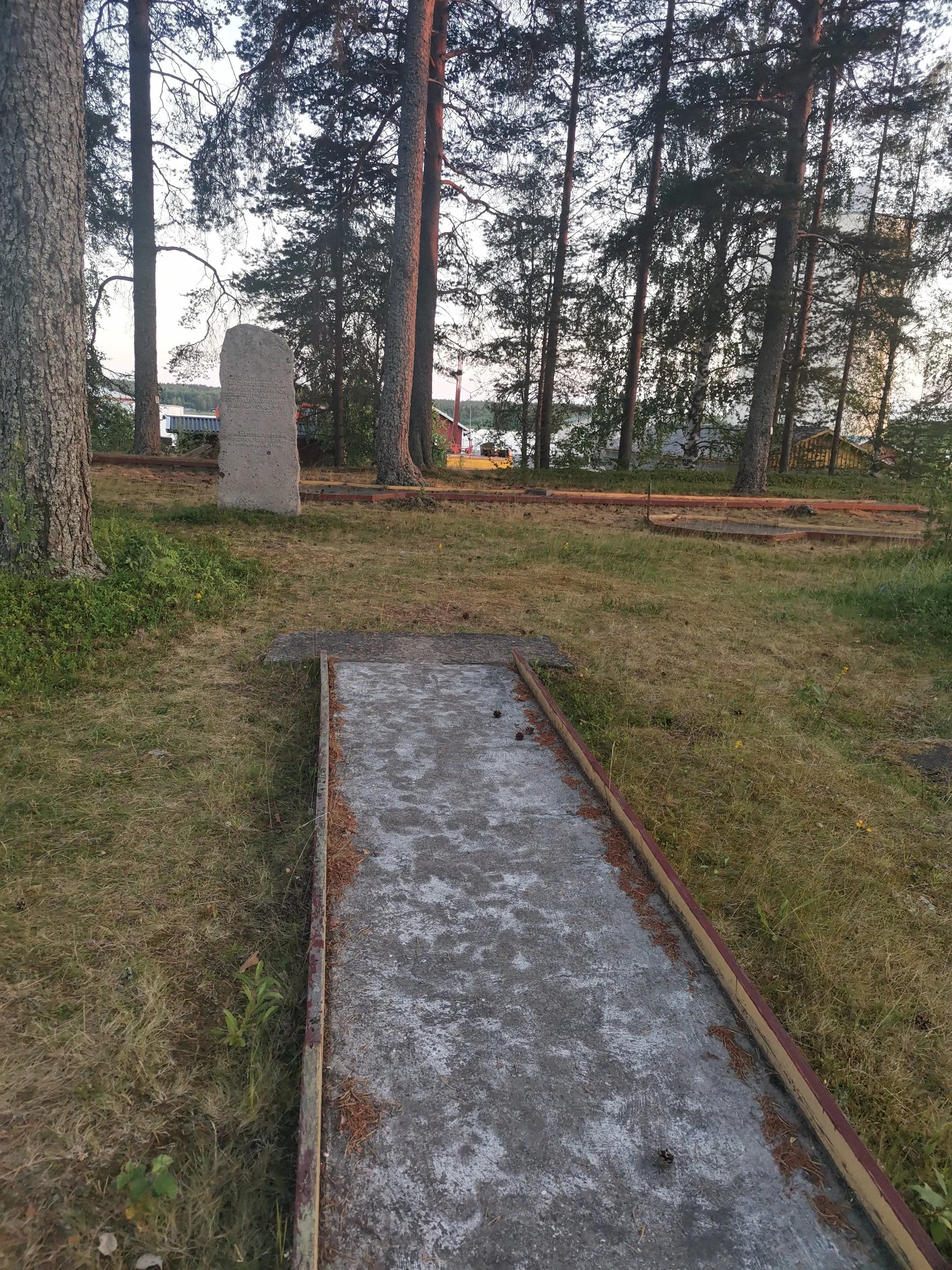 Etterhvert fikk Evelin lyst til å lufte seg litt, så jeg ble med henne ut en tur, og gikk en kveldstur rundt i området. Vi ramlet over en forlengst nedgrodd minigolfbane. Det gikk et sukk gjennom 11-åringen. Hun elsker minigolf. Storesøster også. Det er alltid et ønske på ferieturer, og hittil i sommer har vi ikke truffet på én eneste. Derfor ble gleden fort snudd til skuffelse da hun innså at det ikke ble noe her heller.