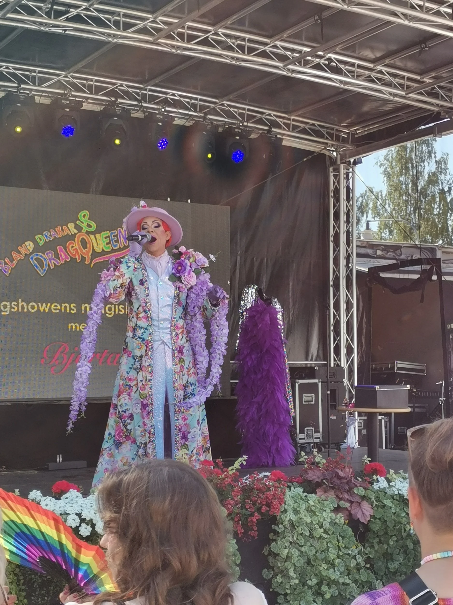 Nå hørte vi at det skjedde noe på hovedscena i ei tverrgate like bortenfor tivoliområdet. Der skulle det være et slags dragshow med en dragartist jeg ikke bet meg merke i navnet på. Jeg elsker mangfold, men akkurat drag som underholdning klarer jeg vel ikke helt å engasjere meg veldig i. Det blir litt for mye revy for meg, dessverre.