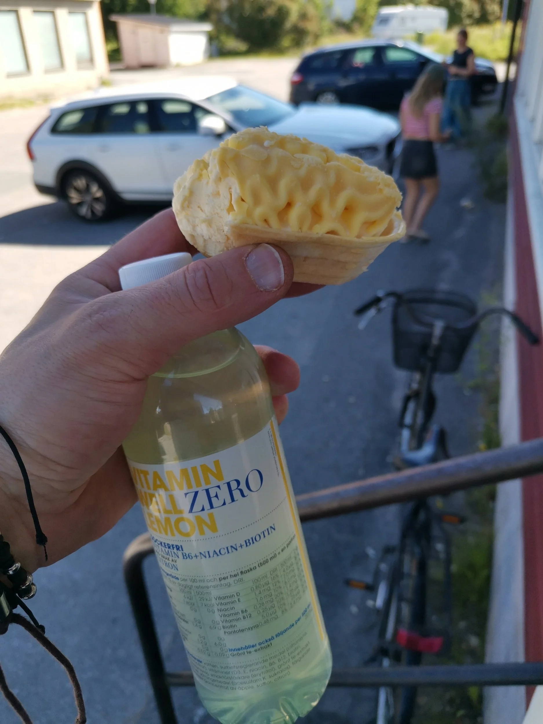 Sammen med isen kjøpte jeg ei flaske vitamindrikk. Jeg er jo grunnleggende skeptisk til slike produkter, akkurat som jeg styrer unna alt som slutter på pro. Smaken, derimot - den satt som ei kule. Dette var utrolig forfriskende og godt i sola, og er noe jeg kommer til å kjøpe igjen hvis termostaten når slike sifre igjen noen gang.