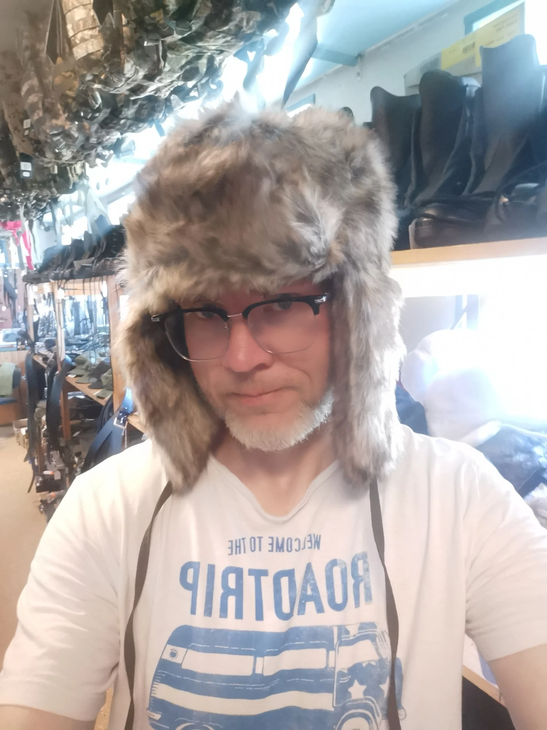 Fattern på sin side tok en sving gjennom butikken, som stort sett var fylt opp av gammelt militærutstyr, og noen gamle Volvo- og Saab-effekter. BF-avdelingen lengst bak i lokalet var det ingen som hadde rørt på ei stund. Forståelig nok. Jeg klarte selvfølgelig ikke å dy meg, men endte opp med å bare prøve, ikke kjøpe.