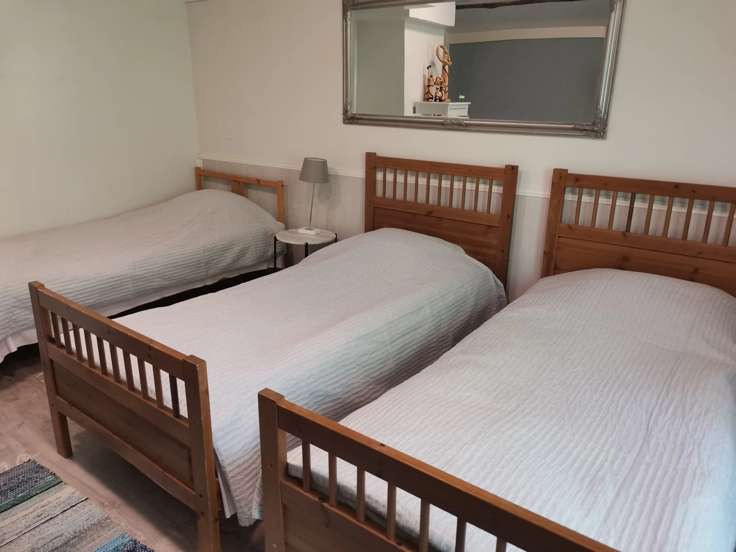 Et par minutter senere tikket det inn en melding med koden vi trengte, og vi kunne låse oss inn i bygget, og bære med oss bagasjen opp den smale trappa til andre etasjen. Der hadde vi fått to soverom på hver side av gangen, med tre senger i det ene og to i det andre. Ingen ville egentlig ligge på et eget soverom, og i følge instruksene som lå på bordet, så ville vi bli fakturert ekstra hvis vi hadde rørt flere enn tre senger. Så dermed forble det ene soverommet bare ubrukt luksus, mens vi stuet oss sammen inne på hovedrommet, og fordelte oss på de tre sengene.