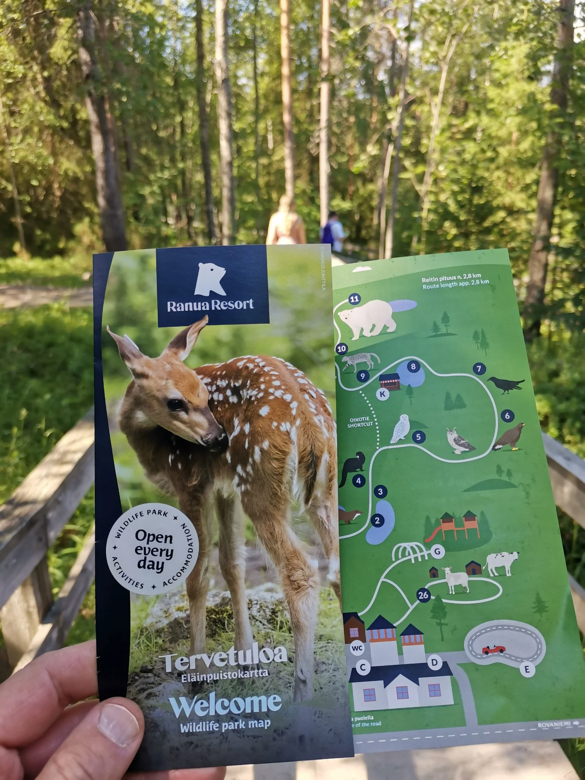 Da vi om litt så skiltet til Ranua Resort Zoo, en park bygget opp etter samme lest som flere av parkene vi har her hjemme - med overprisede hoteller og souvenirbutikker, så parkerte vi bilen på den plassen som hadde mest skygge, smurte oss med solfaktor 50 og tålmodighet. Parkeringsplassen var ganske så full. De fleste finskregistrerte, men vi vi spottet også en annen norskregistrert bil - med ZT-skilter. Jentene synes det er artig å spotte andre nordmenn på tur, så spente på om vi kom til å høre dem i parken labbet vi mot inngangen.