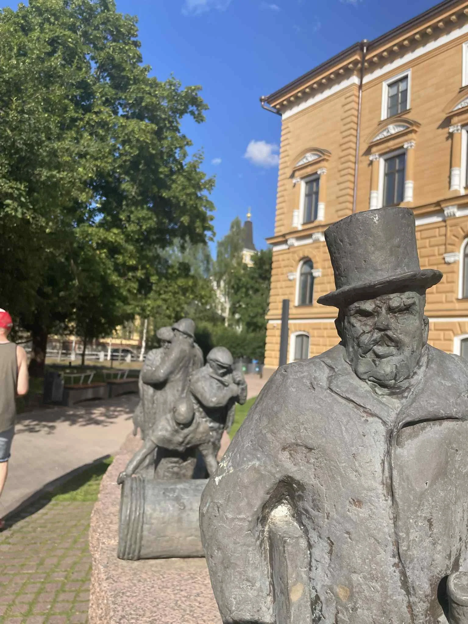 Jeg valgte å kjøre på skilt og ikke på Google Maps denne gangen. I tillegg brukte vi den sultne magefølelsen. Vi fulgte skiltene mot Keskustan slik vi hadde gjort flere ganger før, og nå hadde det for alvor gått opp for oss at “keskustan” faktisk betød “senturm”. Vi passerte stadionen til fotballaget i byen, vakkert plassert langs Uleälven, og kom oss etterhvert inn i det som lignet på downtown. Der fant vi en parkeringsplass i ei sidegate, som til alt overmål var gratis på søndager. Vi steg ut i det som fortsatt var 30 varme, og ruslet i retning der vi så den største ansamlingen av mennesker.