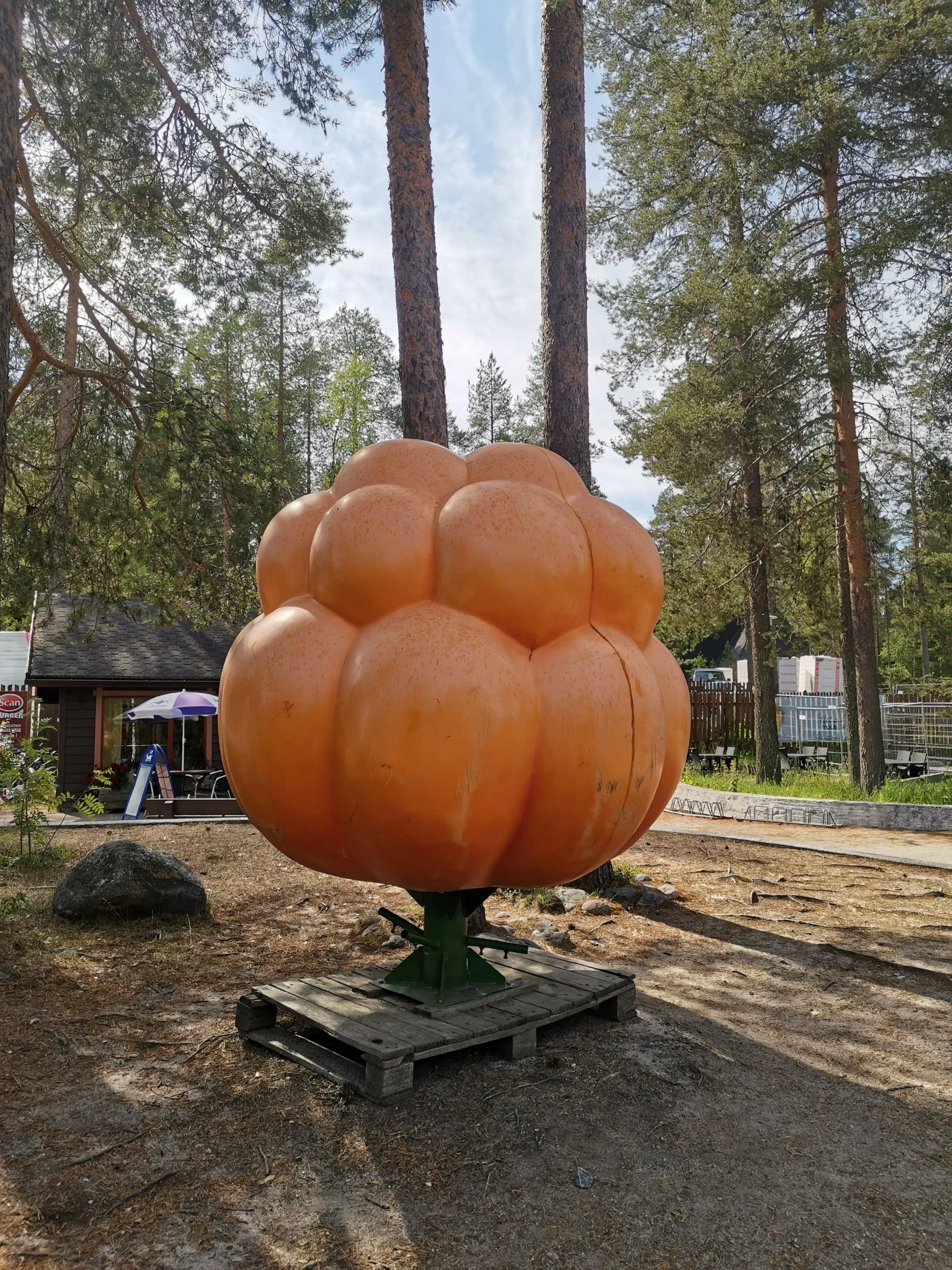 Den enorme multa utenfor inngangen, derimot. Den var aldri i fare for å smelte bort. Finland er multeland, og de promoterer multa som om den skulle vært gull. Det er den jo på sett og vis også. Skogens gull. Jeg elsker multe, så jeg kunne fort vært et lett bytte for alle produkter med multe som kastes på turister til en stiv pris her oppe. Jeg har stort sett klart å styre unna, sett bort fra en kartong drikkeyoghurt med multesmak, og en liten reisegave til a bestemor (som dere søskenbarn i land ikke må nevne når dere leser dette!).