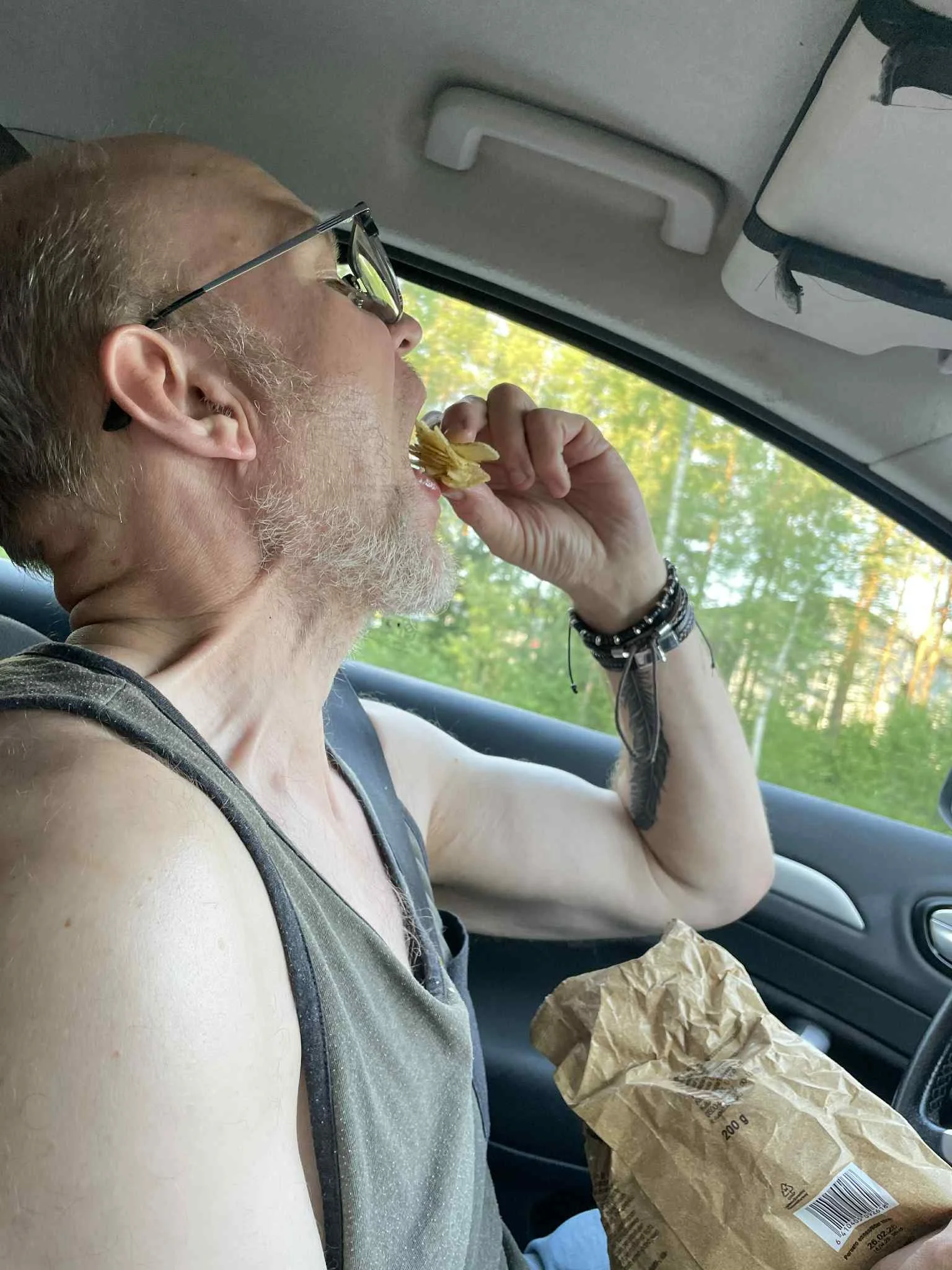 Det var fortsatt en god time igjen til Oulu, og jeg måtte ha noe energi i skrotten for ikke å freake ut i varmen. Valget falt på en sammenklistret pakke med Vestlandslefse, som hadde reist helt fra 50-prosenten på Coop Lillehammer den dagen vi forlot hjemme. Ikke godt, men nok til at jeg klarte en time til bak rattet. Jentene smattet litt på hver sin lefsebuss også, uten at de egentlig følte for å sette skikkelig tenna i den. Men den gikk ned. På ren trass.