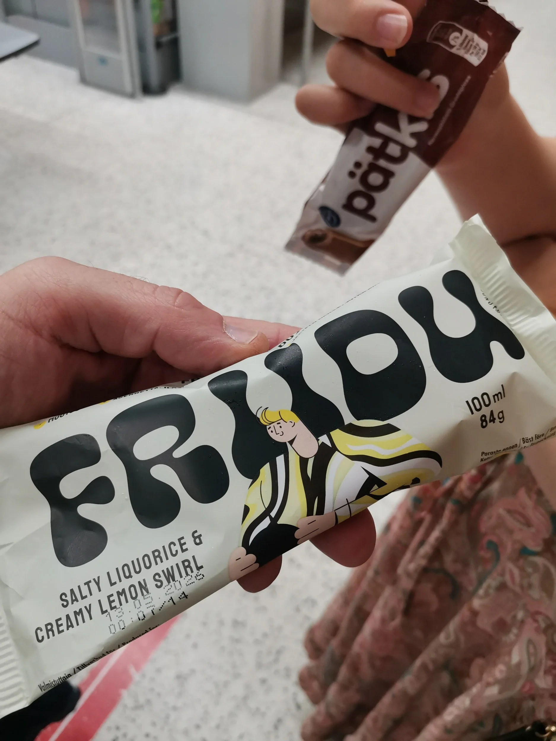 Iris på sin side gikk for en Pätkis, som smakte en blanding av sjokolade og mint. Mint er en stor greie her i Finland, akkurat som lakris - og det er ikke en ting du ikke får med smaken av én aller begge av disse.