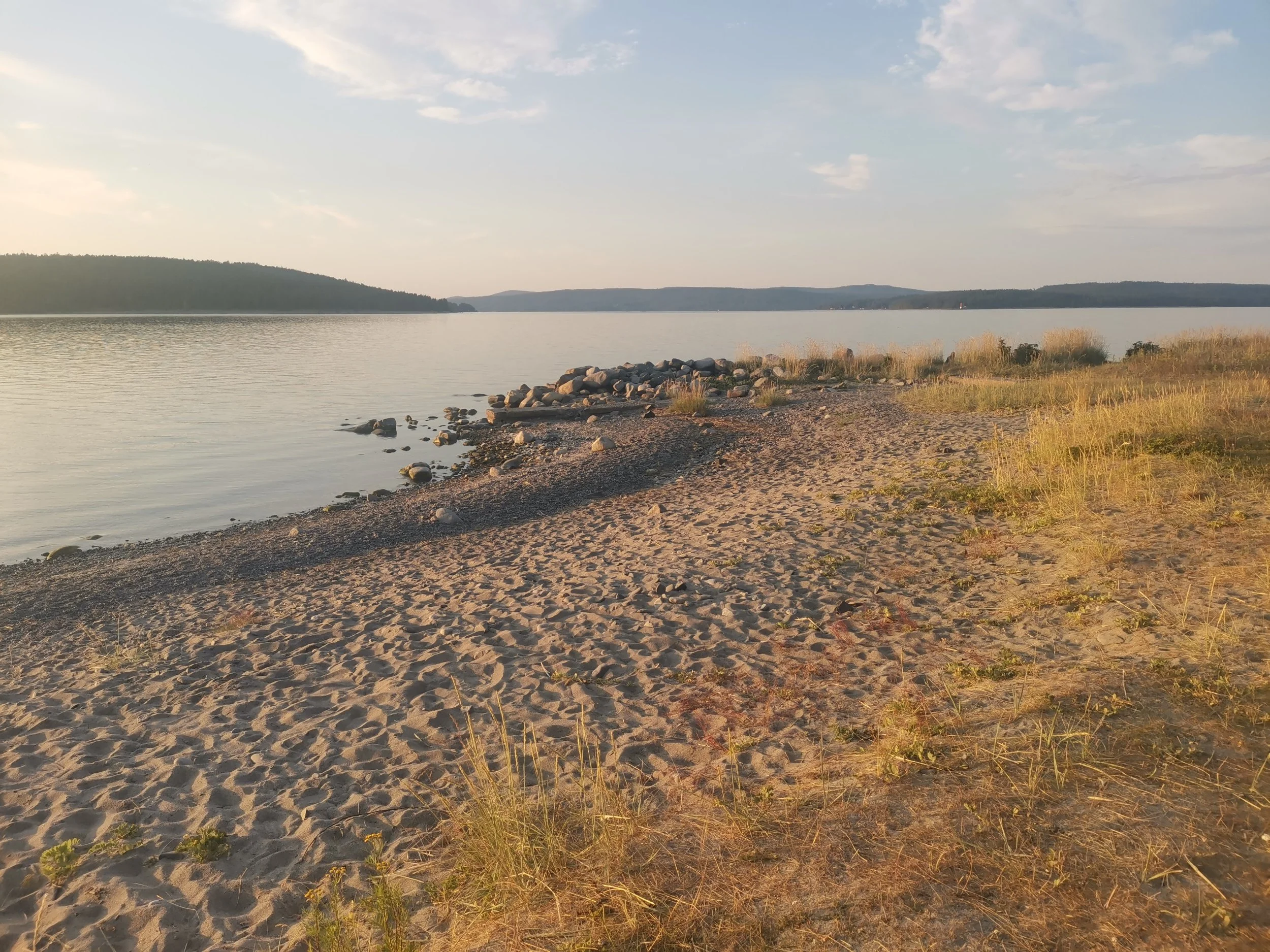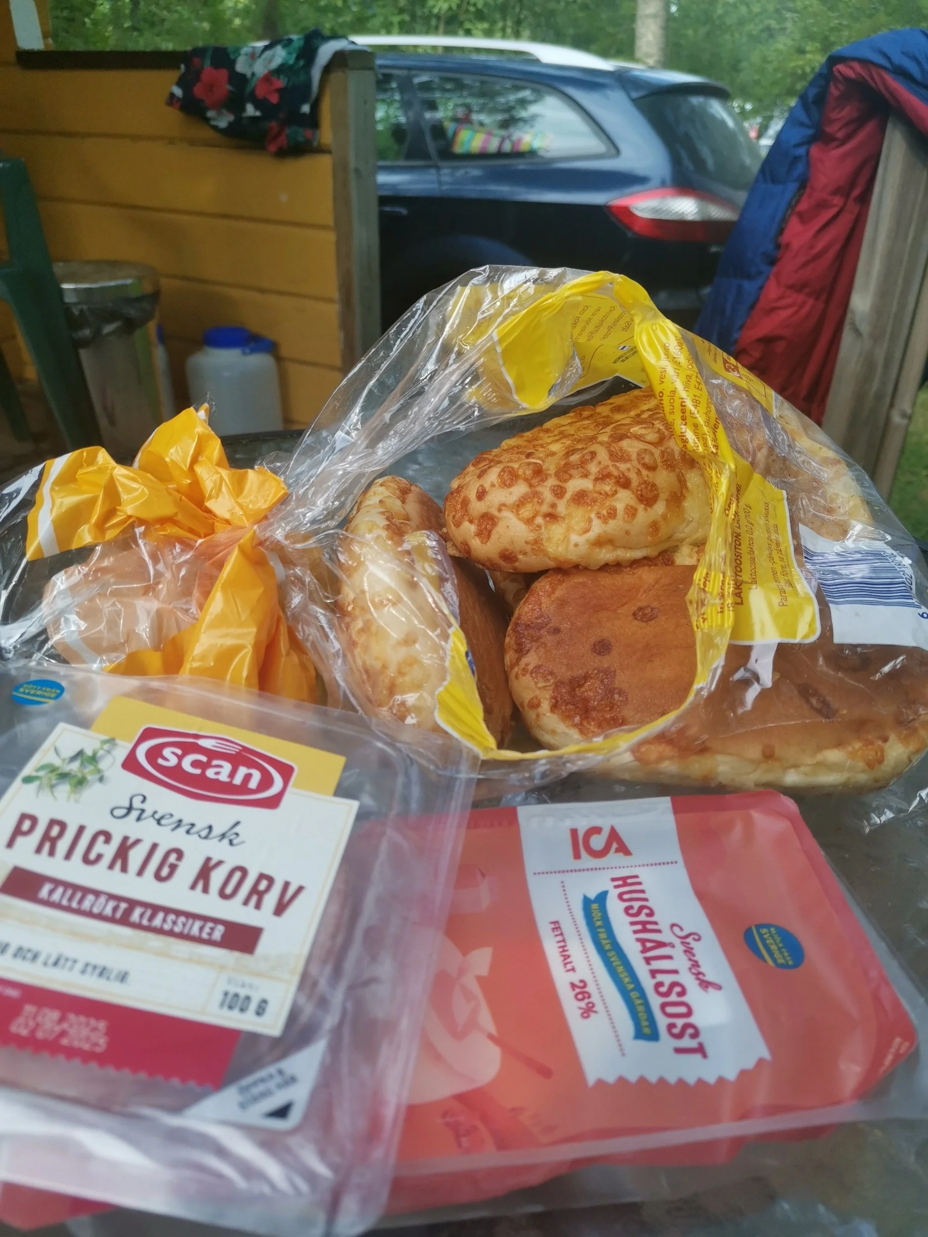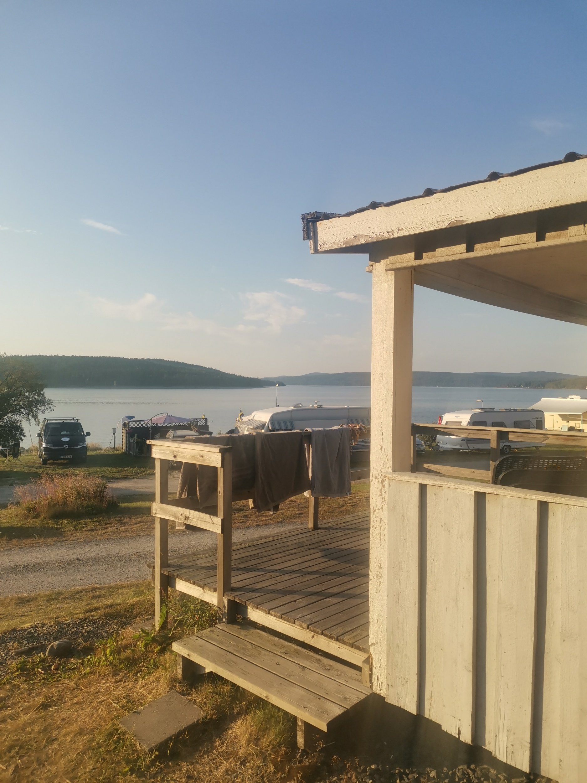10 Euro senere stod vi med tre spinkle, rødmussede pølser i hånda - lagt sirlig ned i det billigste pølsebrødet de kunne oppdrive. Hva gjør man ikke for de sultne ungene sine? Et par turer med ketsjup og sennep, og ei lita skje sprøstekt løk - og det ble faktisk etandes. “Dette får holde til vi tar en middagsstopp på vei til Härnösand”, sa jeg. “Härnö-hva-for-noe”, stod å lese i ansiktet til den yngste. Allerede ved det provisoriske frokostbordet utenfor hytta hadde jeg sagt at jeg allerede hadde sendt en bookingforespørsel til en camping i Härnösand, og fått et ganske raskt tentativt positivt svar - så planen i Sverige var å kjøre de drøyt to og en halv timene ned fra Umeå og til byen ved Höga Kustens port.