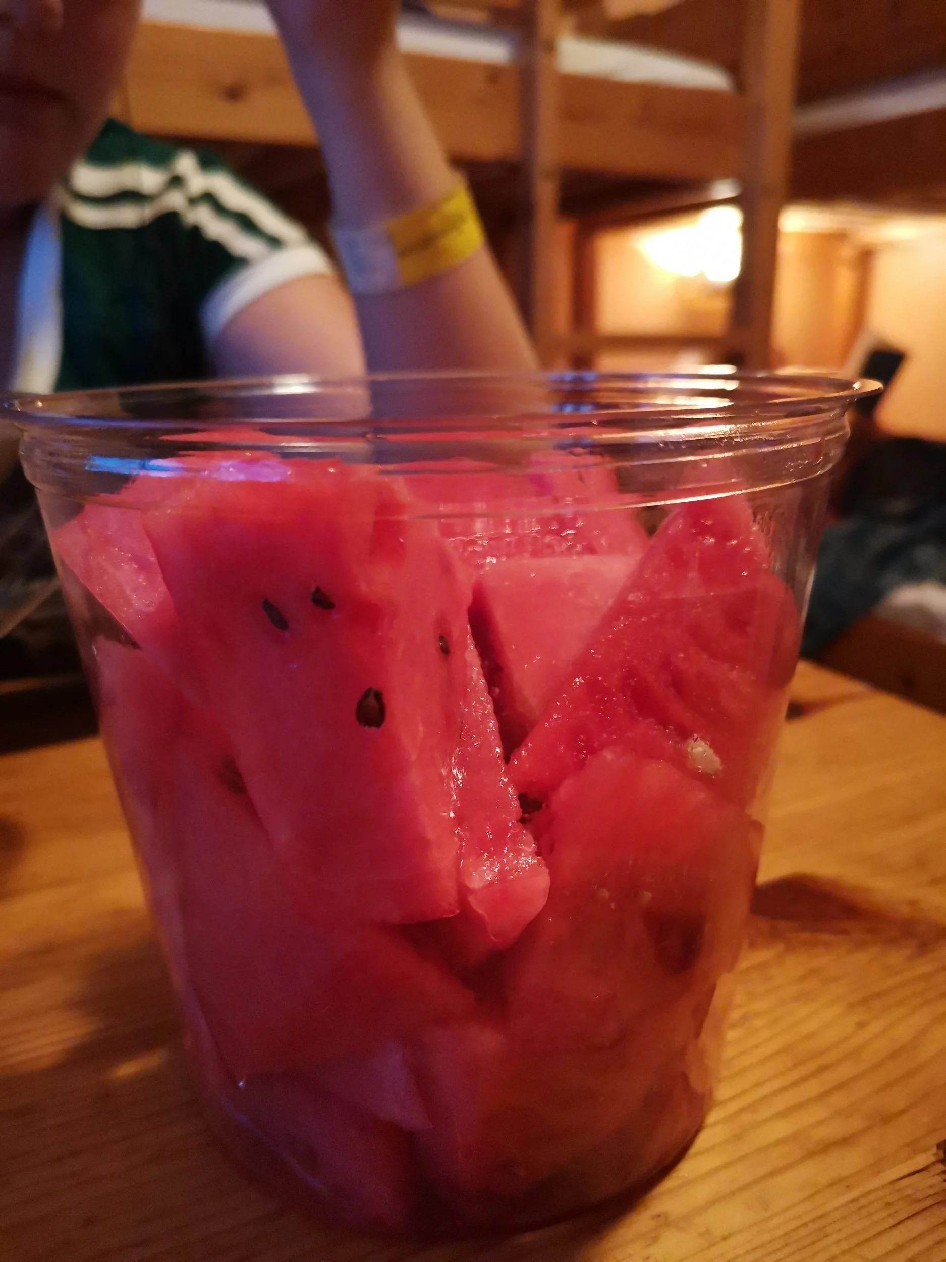Slik gikk nå kvelden, med spilling, litt chips, litt vannmelon, og litt kveldsmat i form av knuste kavringer med multeyoghurt på - en innovativ (!) og ny kombinasjon som har ligget på lur i kjølebagen siden vi passerte Umeå første gang.