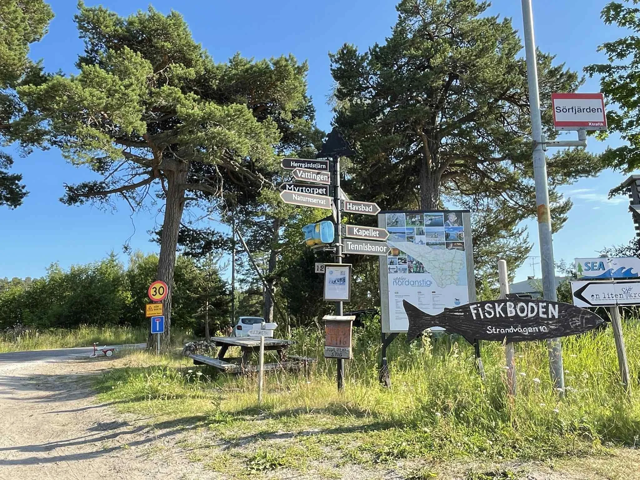 Fattern hadde sett seg ut veien som var promotert og skiltet som “Kustvägen” nedover. Vi tok av noen kilometer syd for Sundsvall, og navigerte oss i retning steder som Skatan, Galtström, Norrfjärden og Sydfjärden.