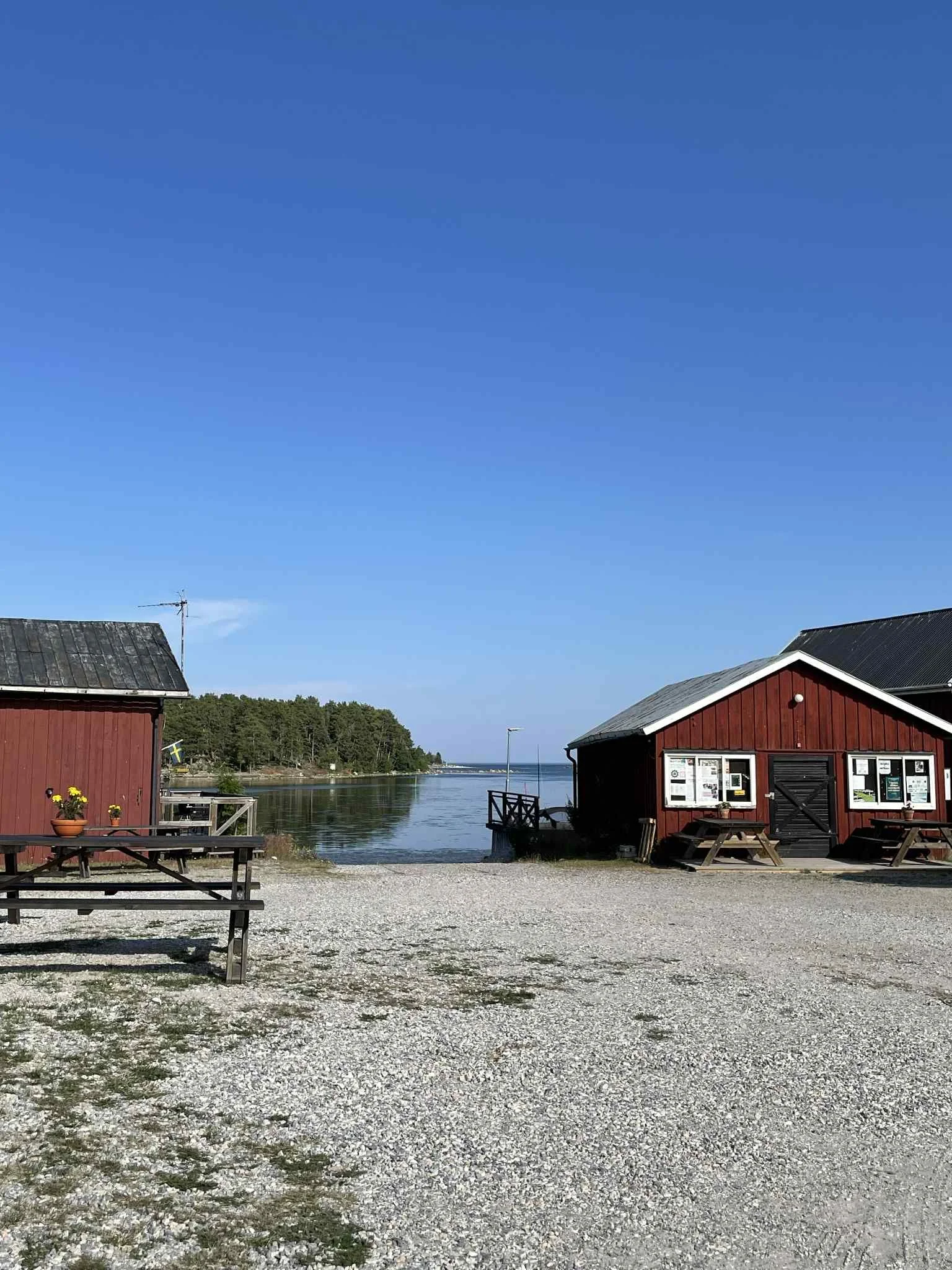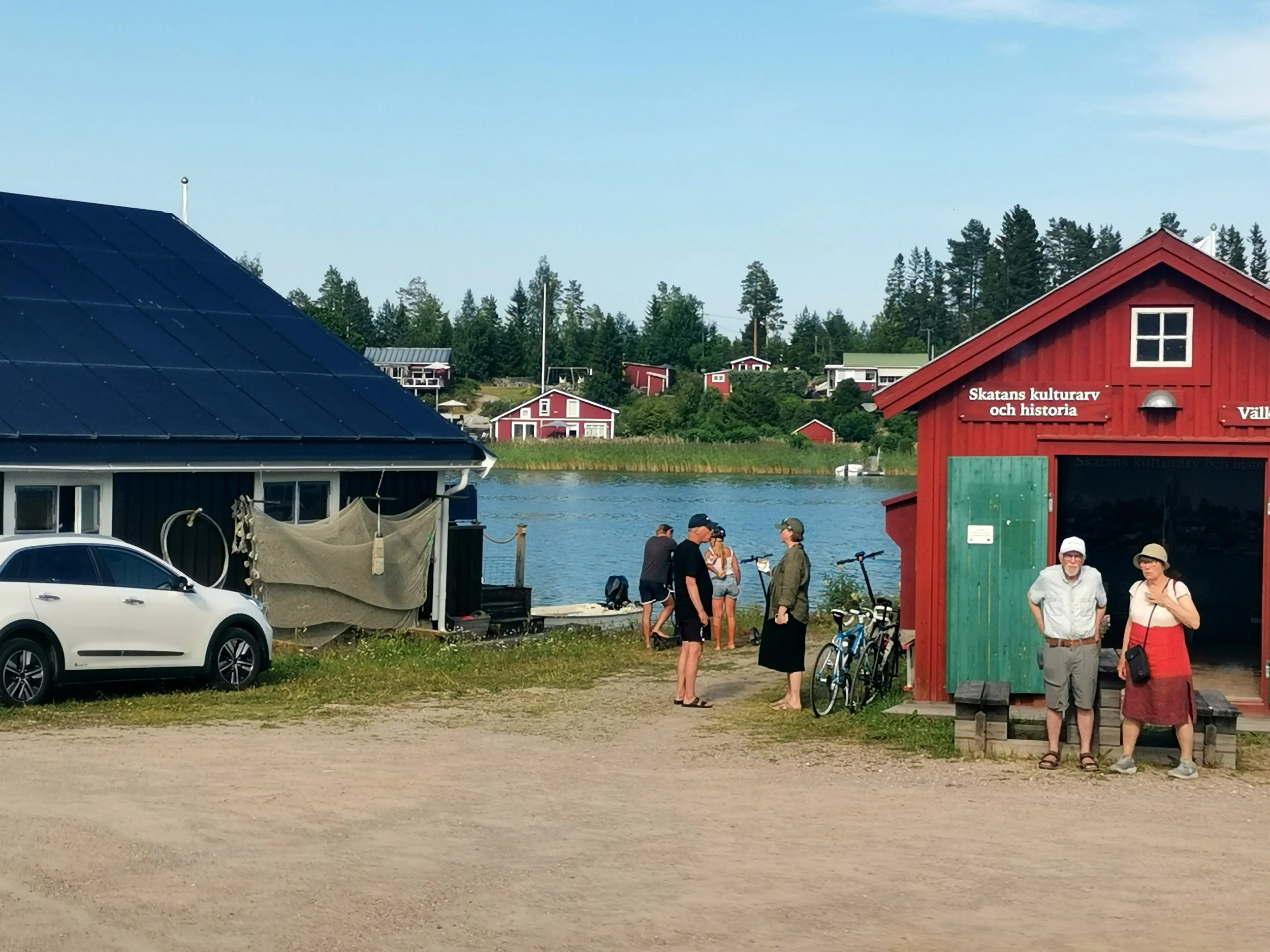 Kystvegen gikk utenom de små perlene som faktisk lå ved kysten. Som Skatan. Vi tok en kort omvei, og kjørte mot sentrum av Skatan, som viste seg å være en eneste lang blindvei som endte ved en liten sjøbod. Jeg kom på at jeg gjorde meg samme erfaring i fjor, da jeg en eneste gang prøvde meg vestover fra E4, da i nærheten av Härnösand. Det var tydeligvis akkurat det samme også sydover. Sammenlignet med kystvegene vi kjenner fra Norge, så ble dette en ordenlig nedtur - ikke minst tidsmessig.