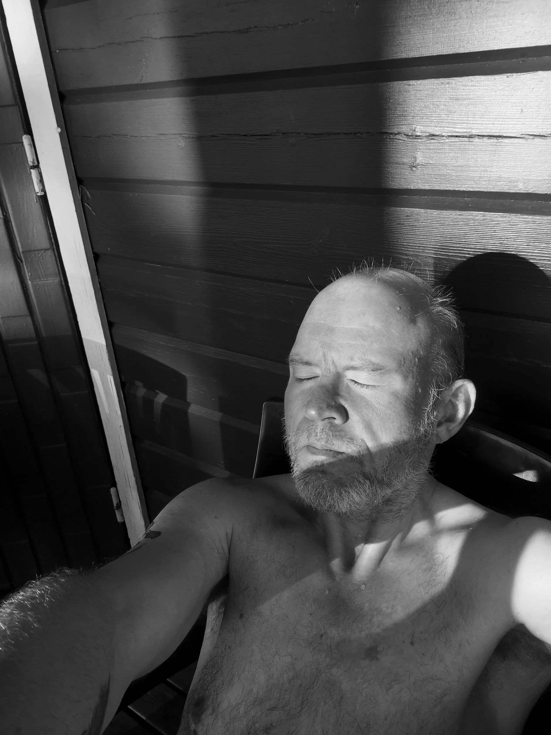 Et glovarmt, tett lite rom møtte oss da vi åpnet døra, så det første vi gjorde var å sette opp to vinduer og døra, og få litt gjennomtrekk. Så bar vi inn det mest nødvendige, før vi alle lot oss friste til å skifte om til badetøy.